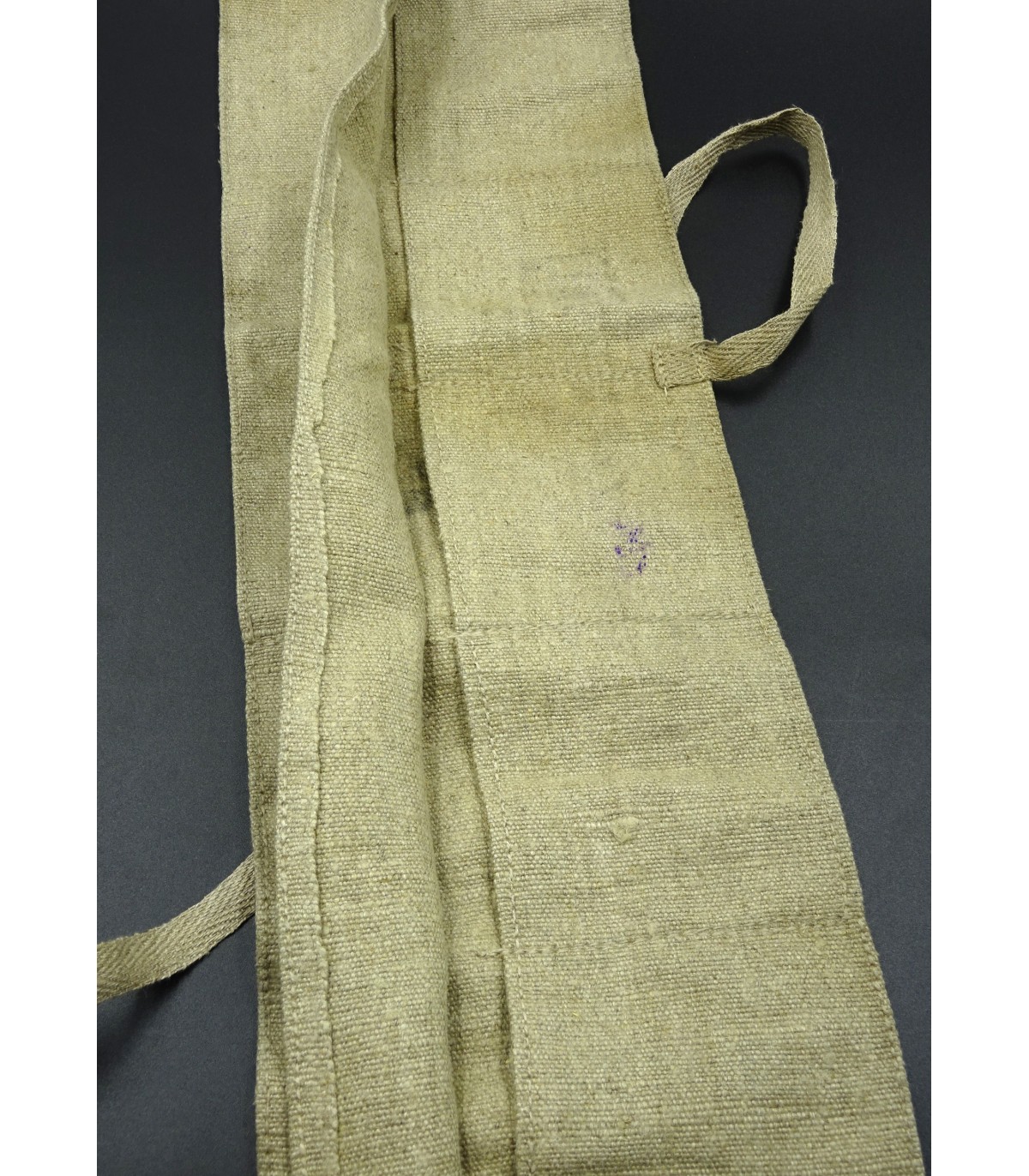 Ungebleichte Leinwand. Mit den dazugehörigen Riemen. Schlecht lesbare Markierungen. TBE. Ziemlich selten.