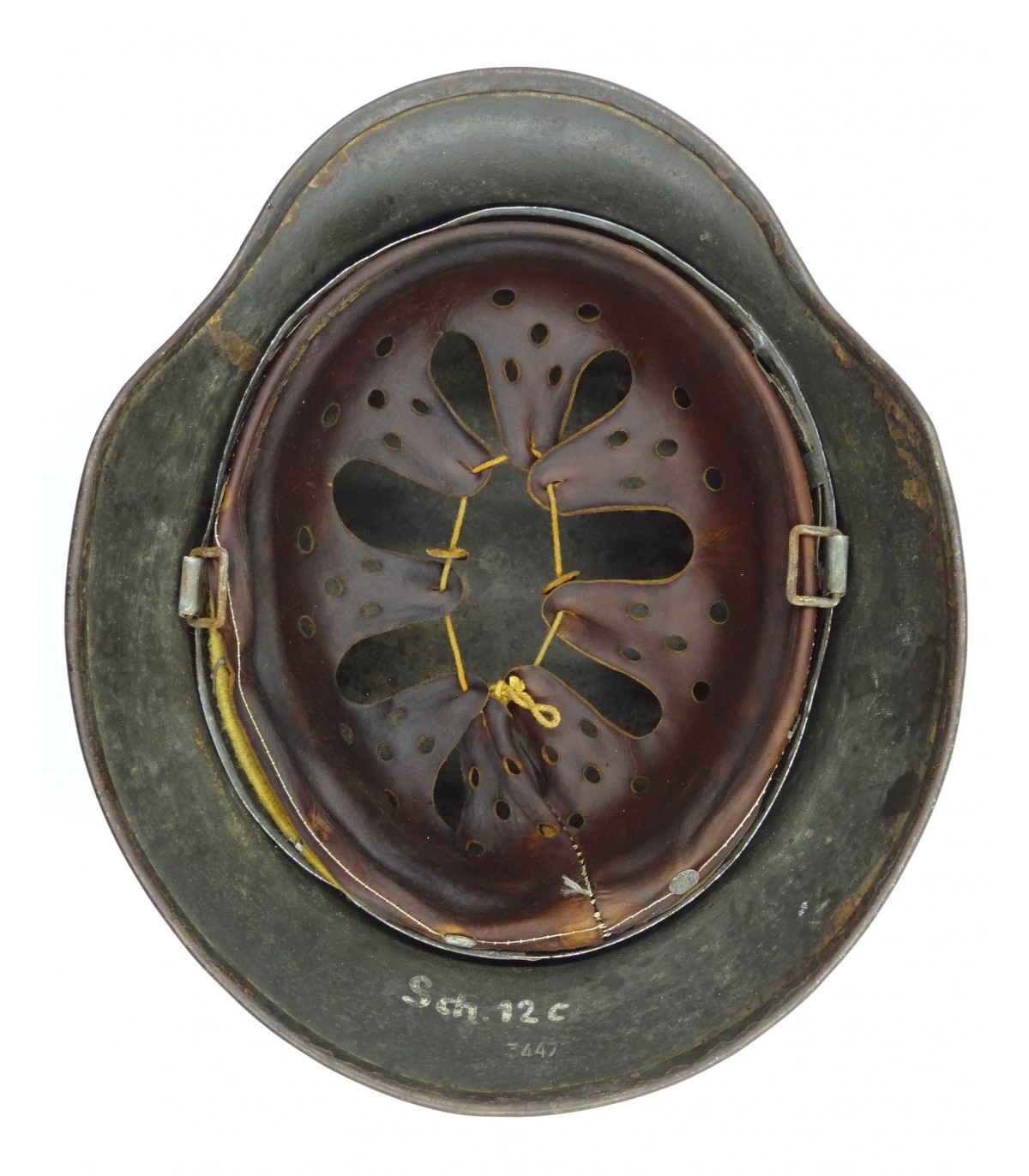 SE62, #3447. Innenausstattung Mle 40. Ohne Kinnriemen. Matte feldgraue Farbe zu 90-95%. Spuren des Adlers. ABE.
