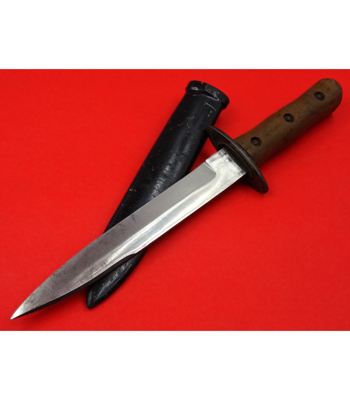 Griff mit Holzplättchen. Schöne Klinge. Lackierung der Scheide zu 98%. TBE.