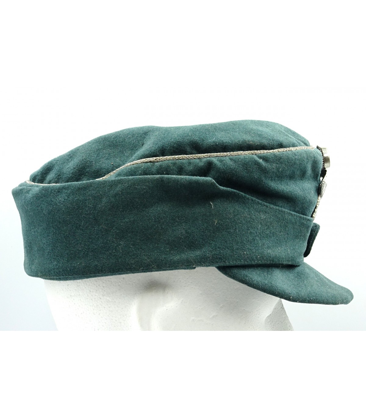 Vollständig. Einknopf-Klappe aus Alu. Brontale Abzeichen aus Alu, spezifischer Polizeiadler in 2 Teilen. Edelweiss an der Seite. Alu-Paspelierung. Schweißband aus hellem, weichem Leder. T58. TBE.