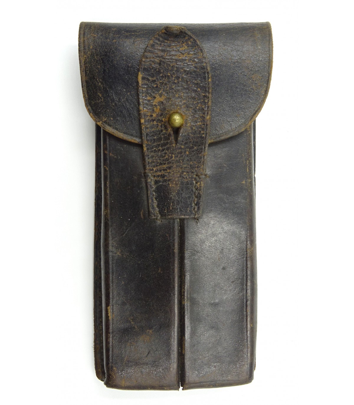 Schwarzes Leder. Markierung unter der Klappe. BE-TBE.