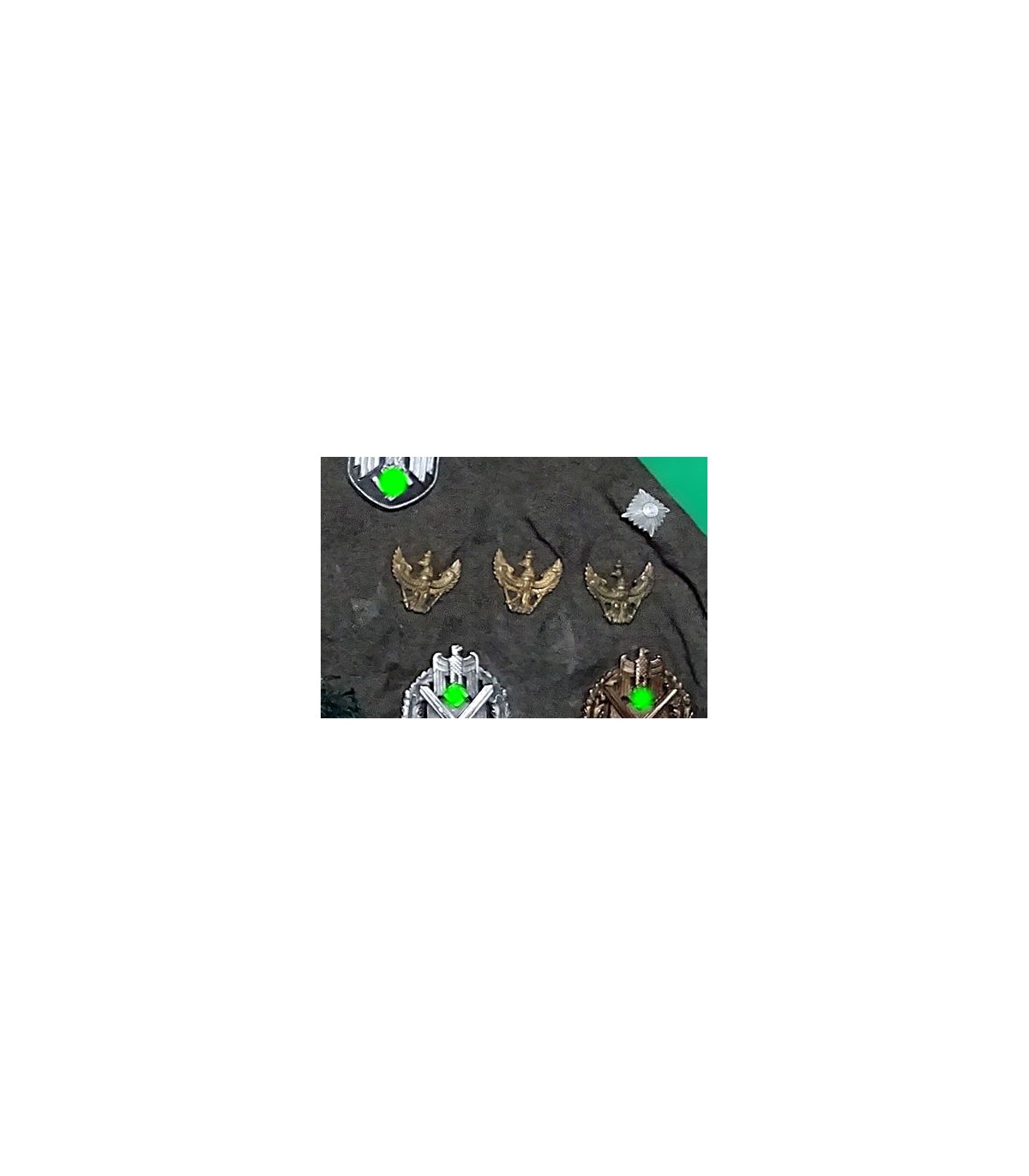 Águila dragontina de Schwedt, llevada en la gorra entre la corona de hojas de roble y el emblema nacional. 2 orejetas de fijación. Procedencia: baúl de guerra de un soldado. TBE (otras insignias no incluidas).