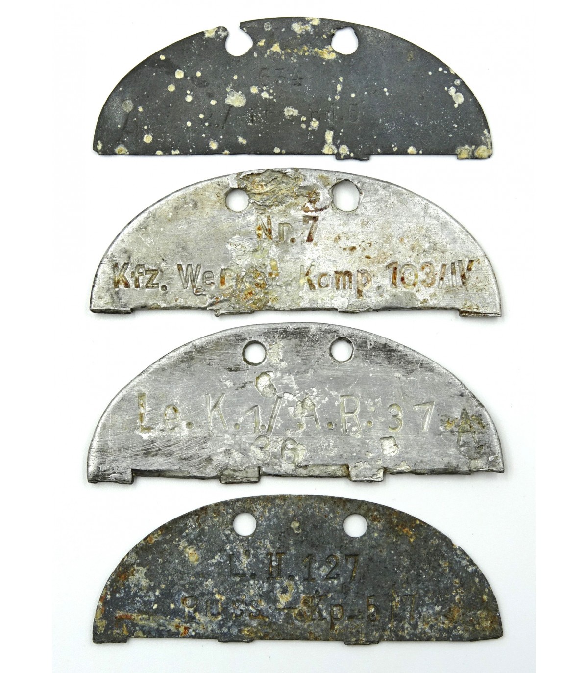 Juego de 4 medias insignias de identidad de soldados de WH caídos en el frente