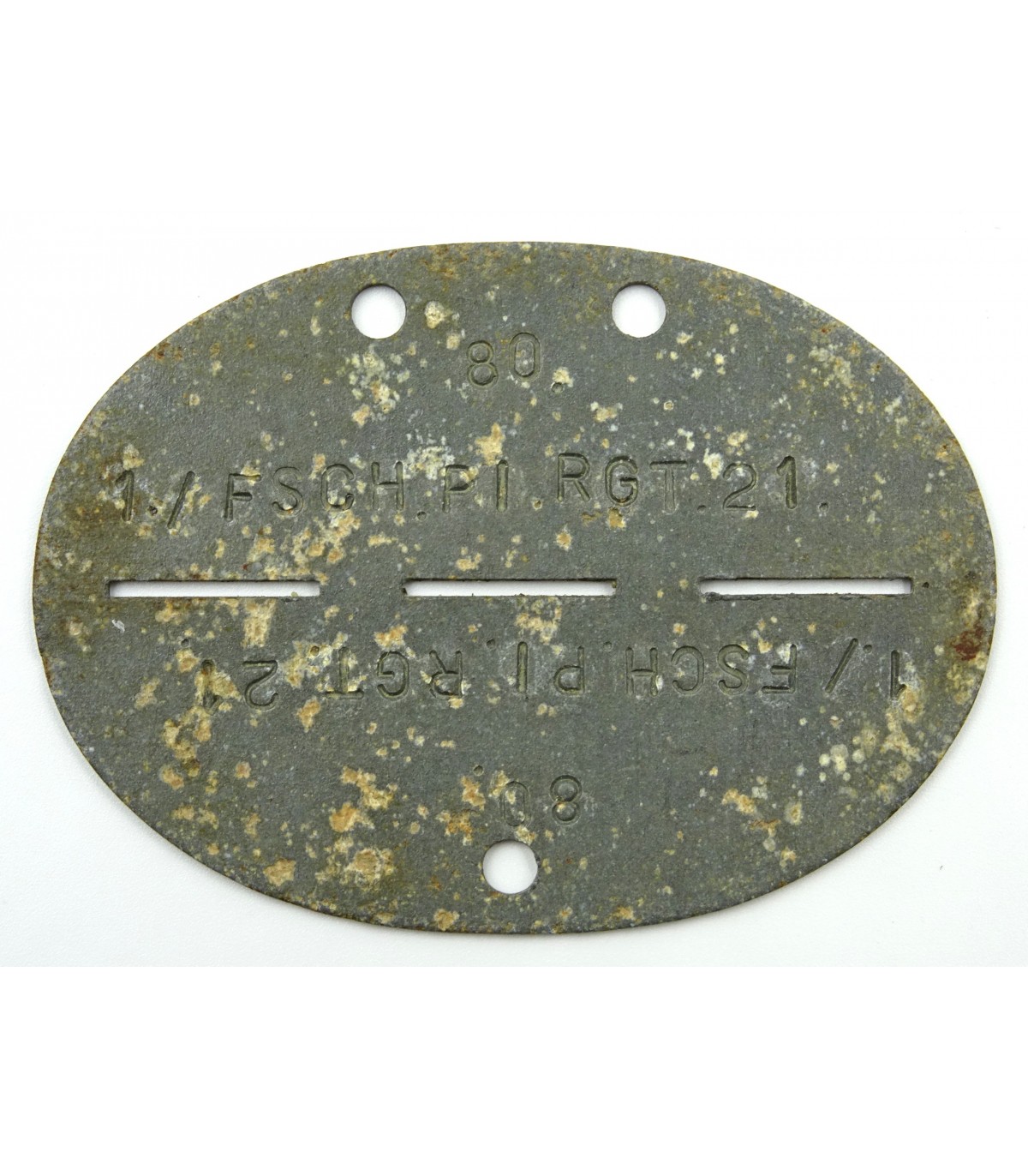 1./FSCH.PI.RGT.21. El 1er batallón del regimiento, con 4 compañías, fue aniquilado en Normandía en julio del 44. Zinc. ABE-. Muy raro.