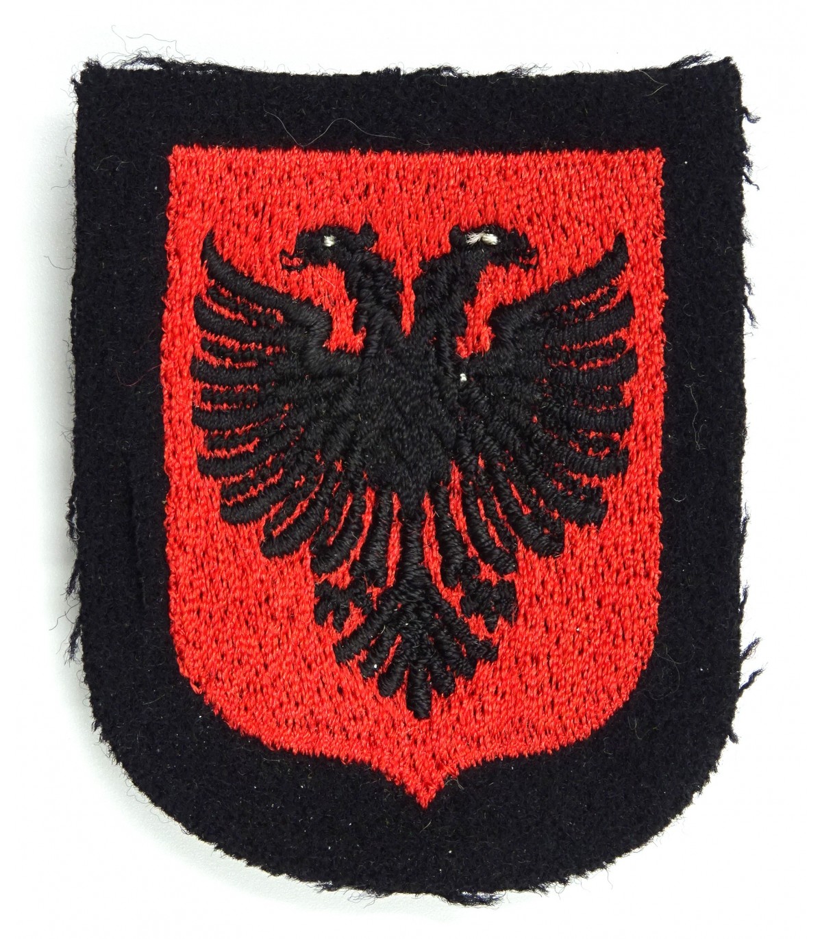 Voluntario albanés. Águila bicéfala negra sobre fondo rojo. Bordado. TBE. Precio bajo.