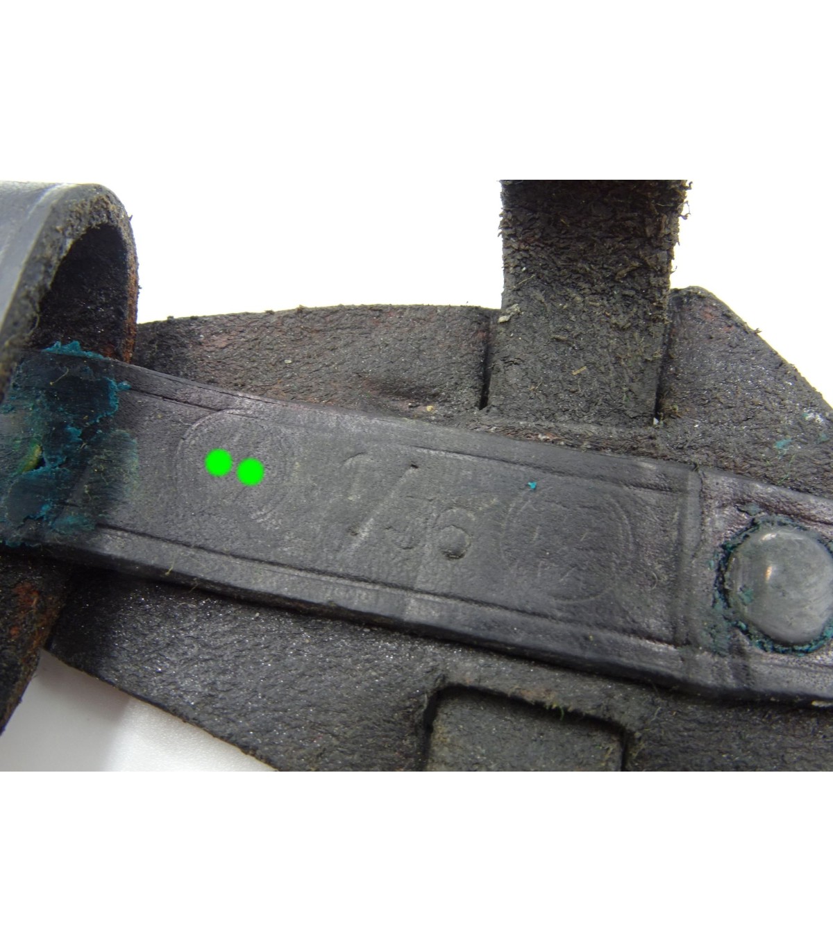 Ferrures maillechort. Marquage RZM-SS sur l'attache et le passant de ceinturon. BE. Bel ensemble.