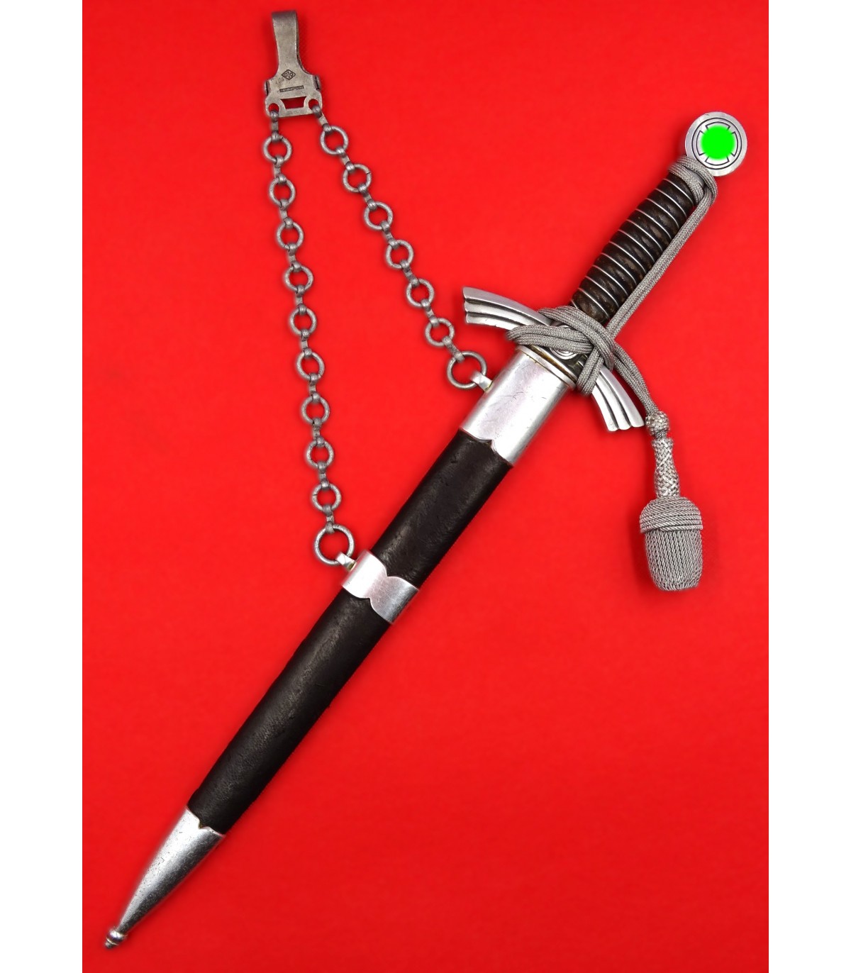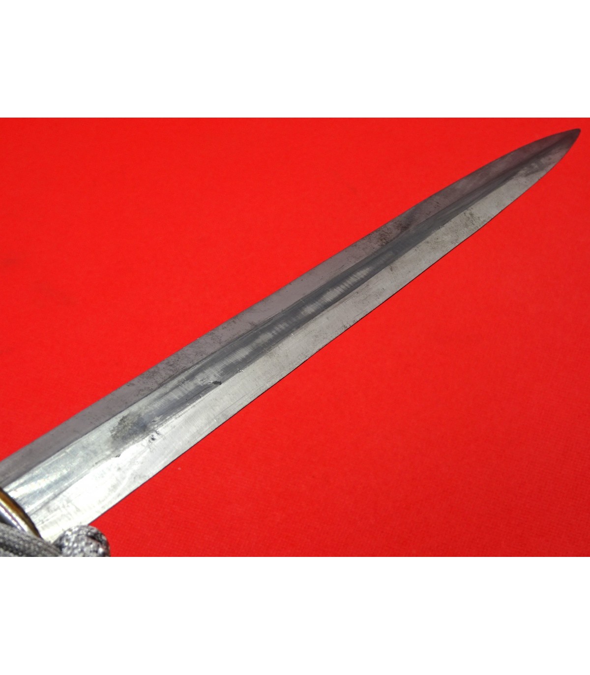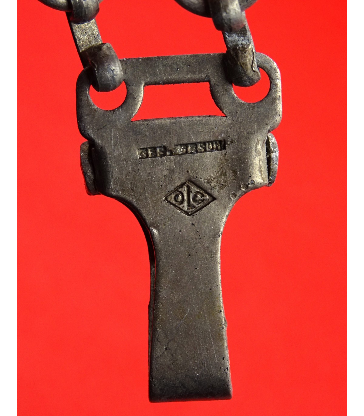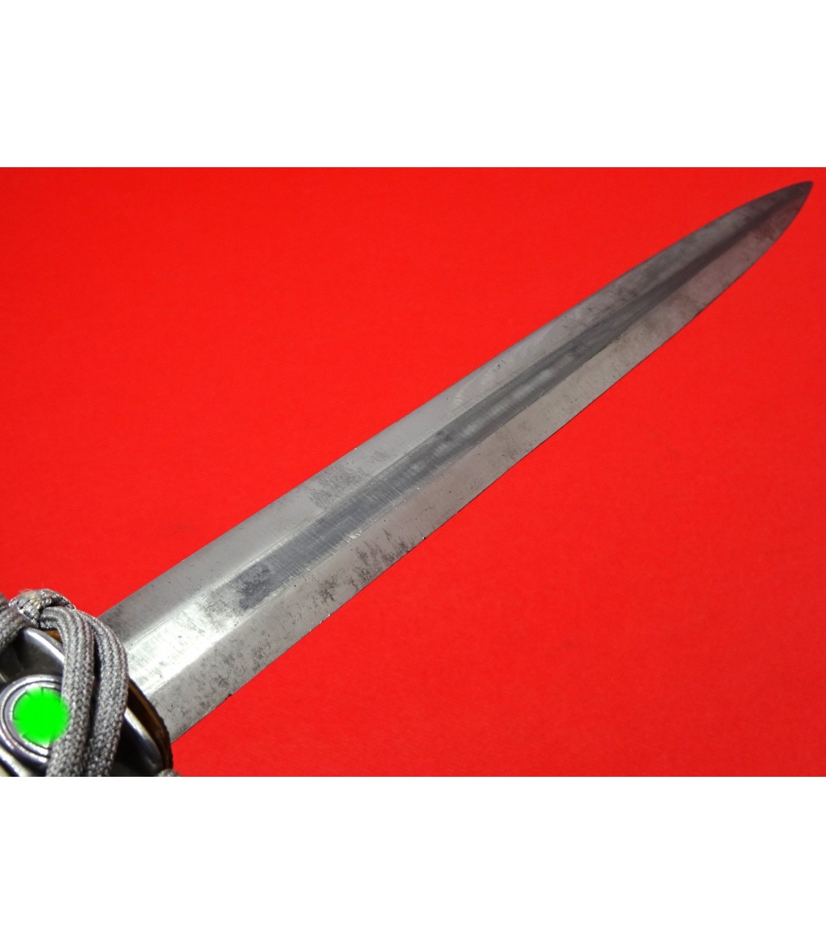 Garnitures alu. Fourreau gainé de cuir. Mousqueton OLC. Dragonne alu. BE.