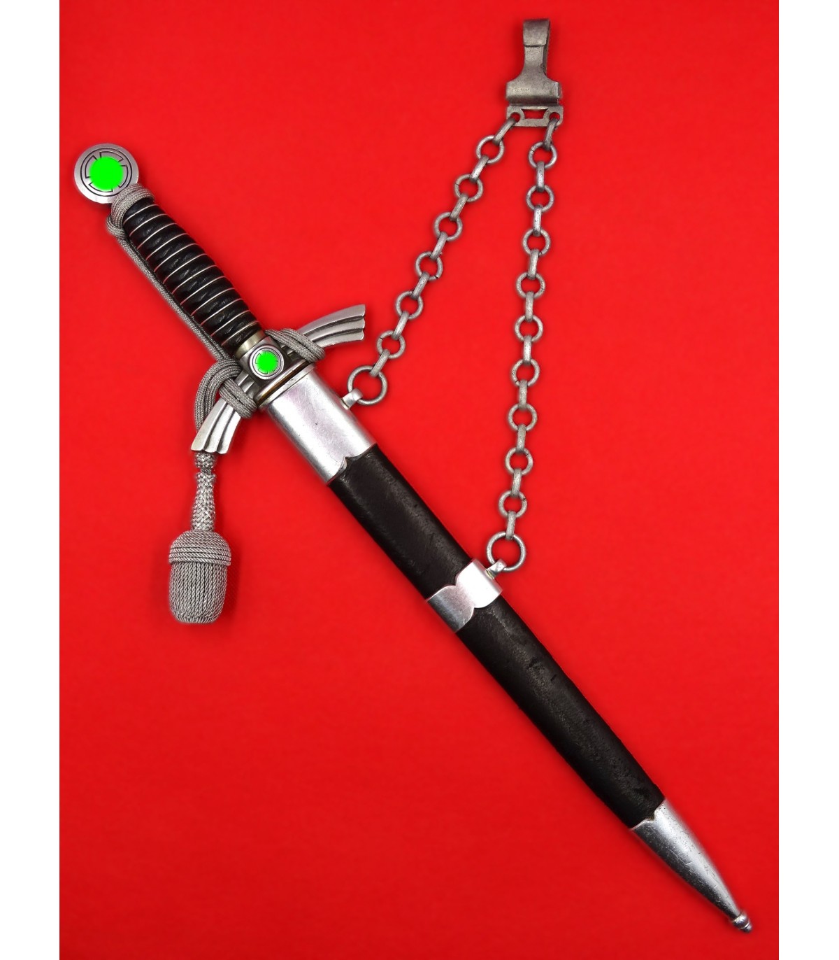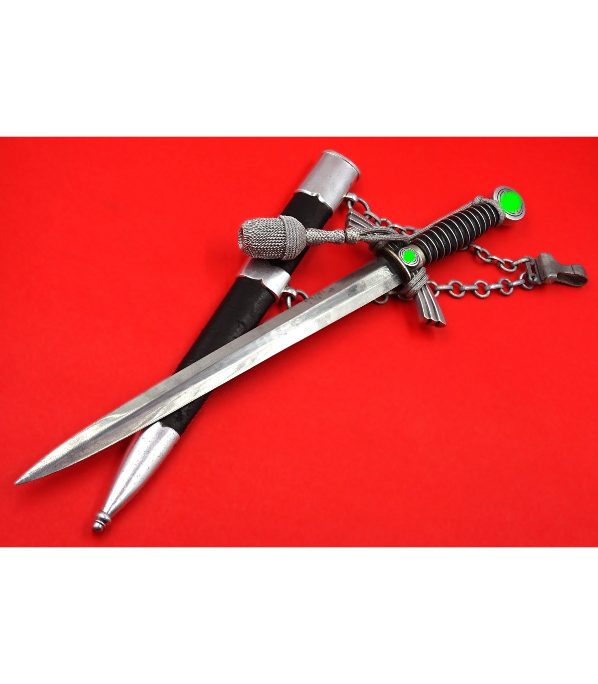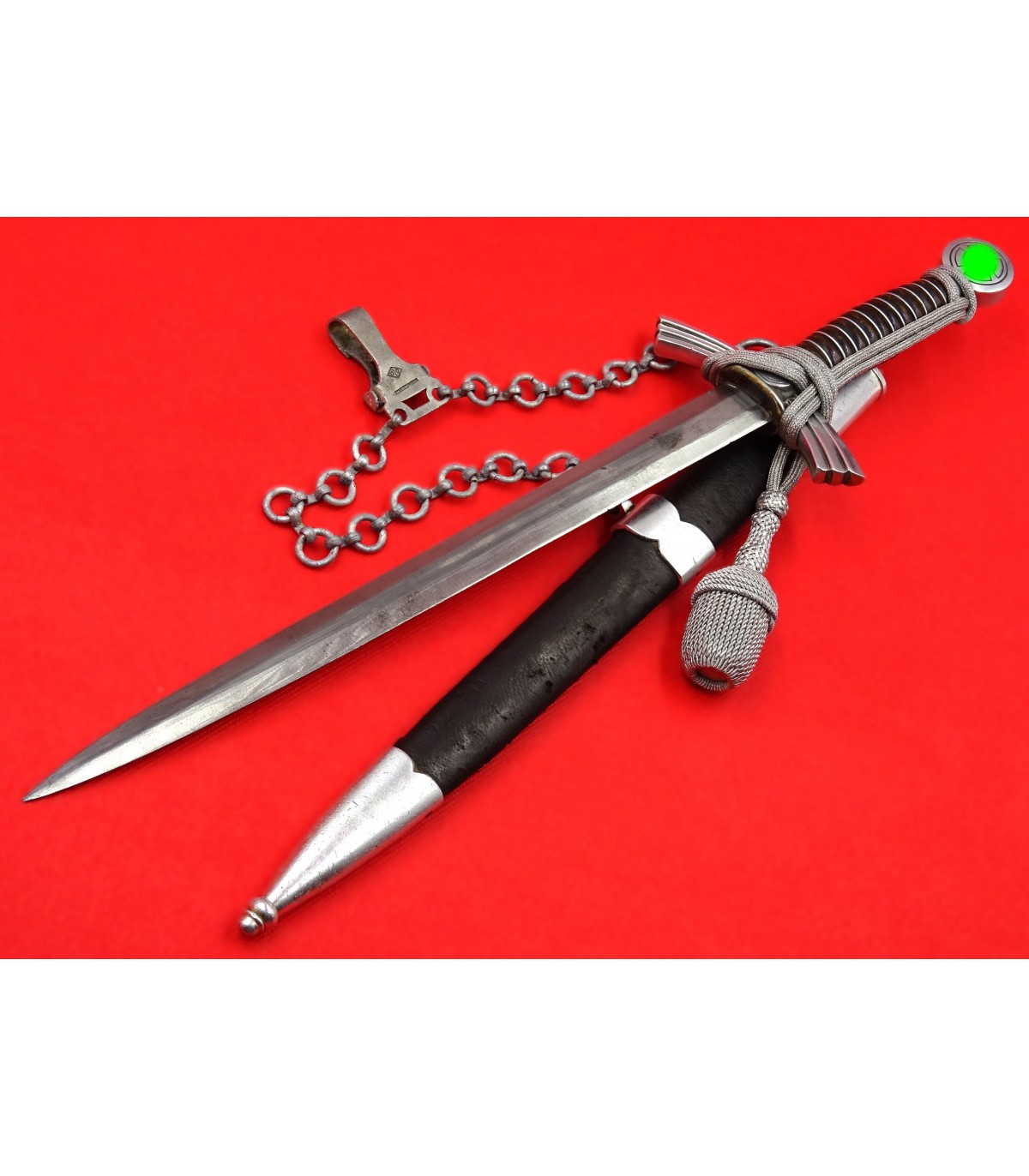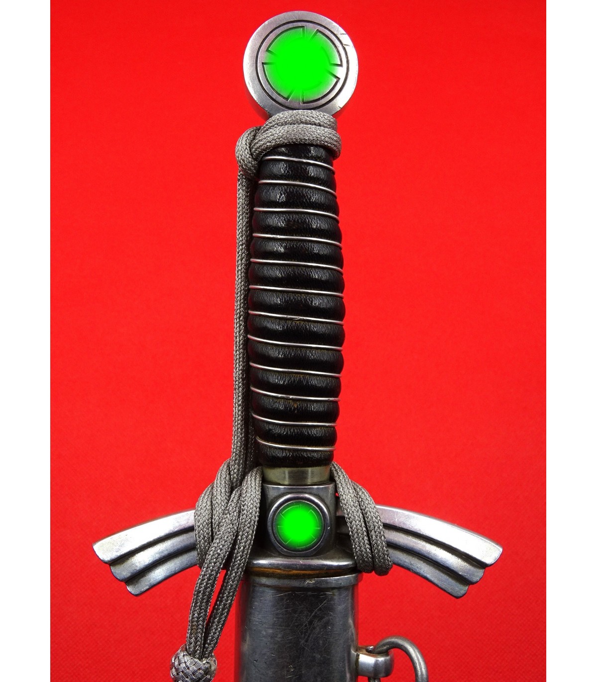 Garnitures alu. Fourreau gainé de cuir. Mousqueton OLC. Dragonne alu. BE.