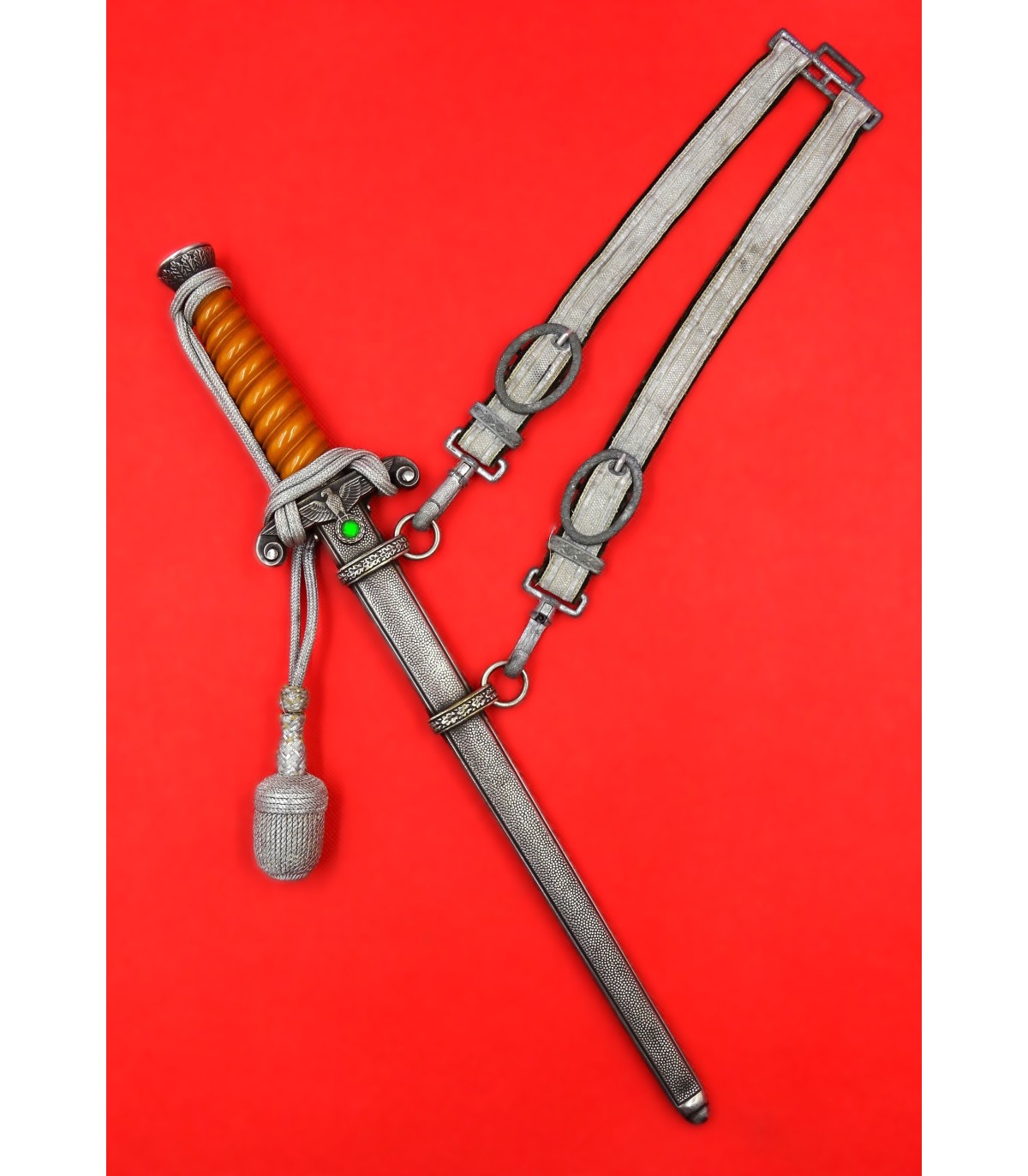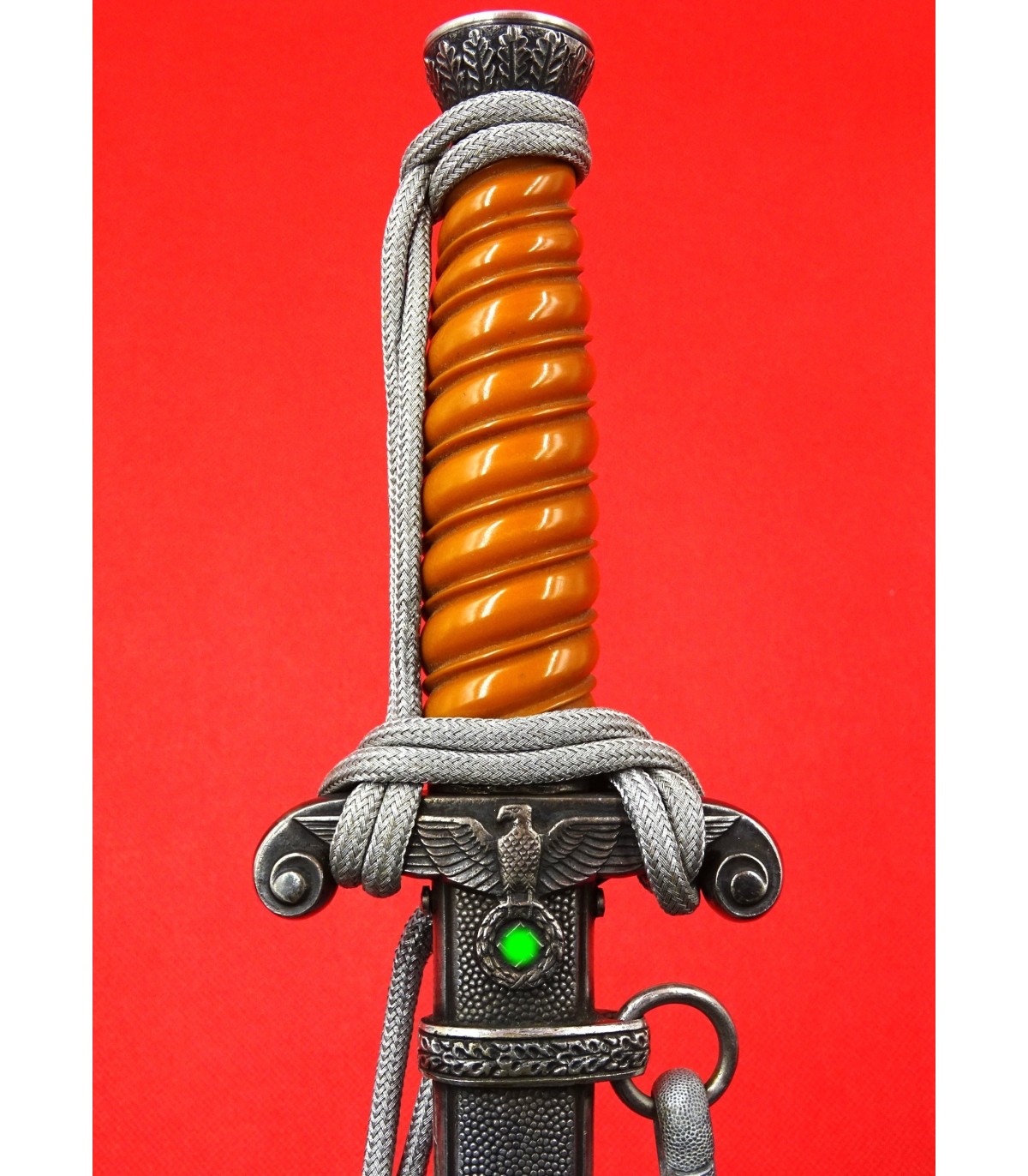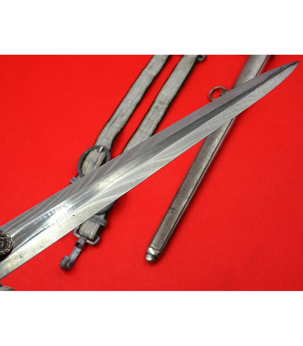 Dague ayant appartenu au général des Panzers Erhard Raus, titulaire de la Croix de chevalier avec feuilles de chêne et de la Croix allemande en or (dont l'uniforme et la casquette sont vendus sous les références HJ001 et HB001). Cette dague avec l'ensemble de la tenue étaient présentés au AAF Tank Museum de Danville VA. USA jusqu'à la fermeture du musée en 2022. Pour la biographie du Generaloberst E.Raus, voir: https://fr.wikipedia.org/wiki/Erhard_Raus