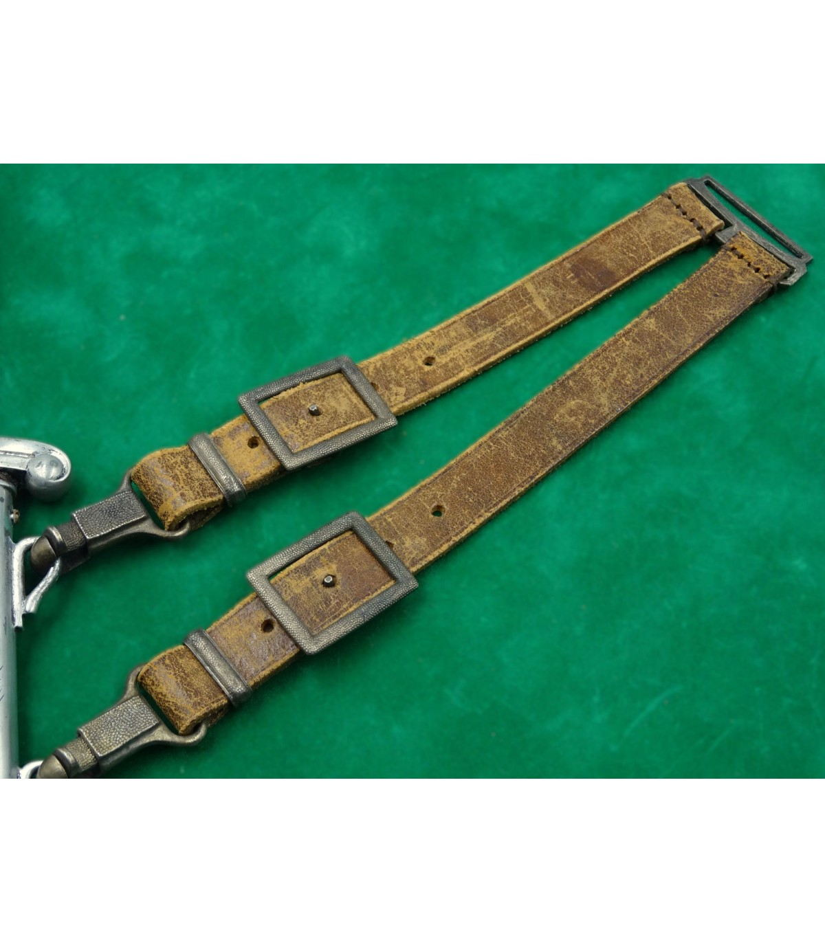 Bon exemplaire de fabrication soignée, aucun dommage sur le fourreau, plaquettes de poignée intactes, lame avec devise en TBE. Avec sa bélière en cuir brun. BE-TBE.