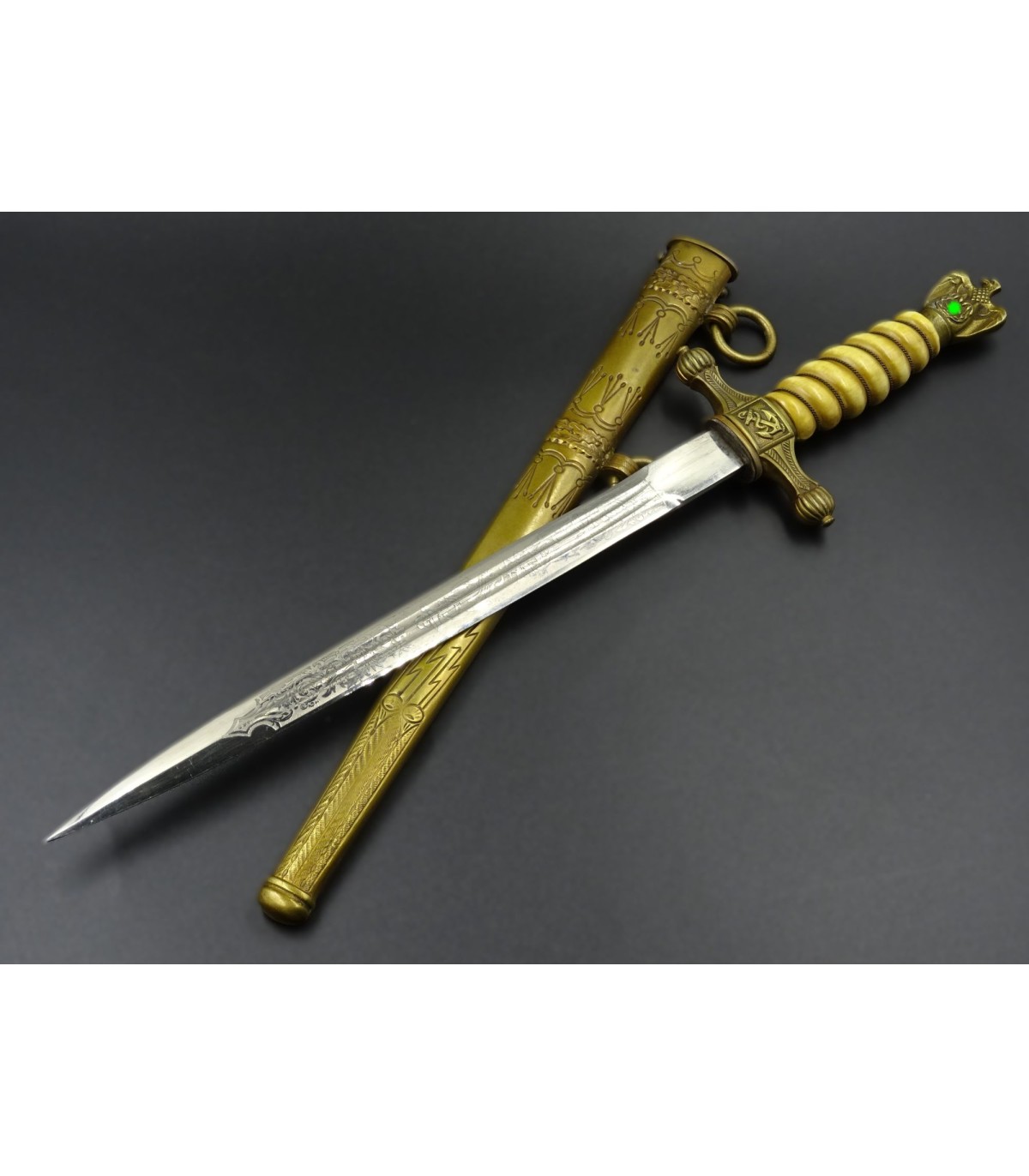 Baïonnette de parade WH à poignée corne et lame gravée double face