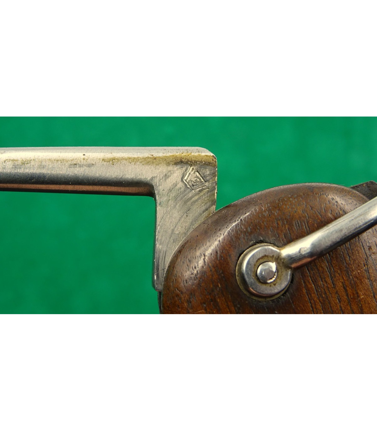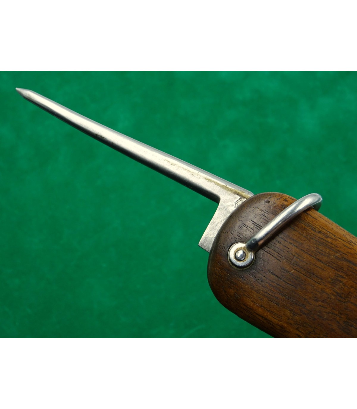 1er modèle. Lame très affûtée et pointe modifiée. Logo SMF. Marqué 681 sous le levier, aigle de réception sur le talon du poinçon. BE.