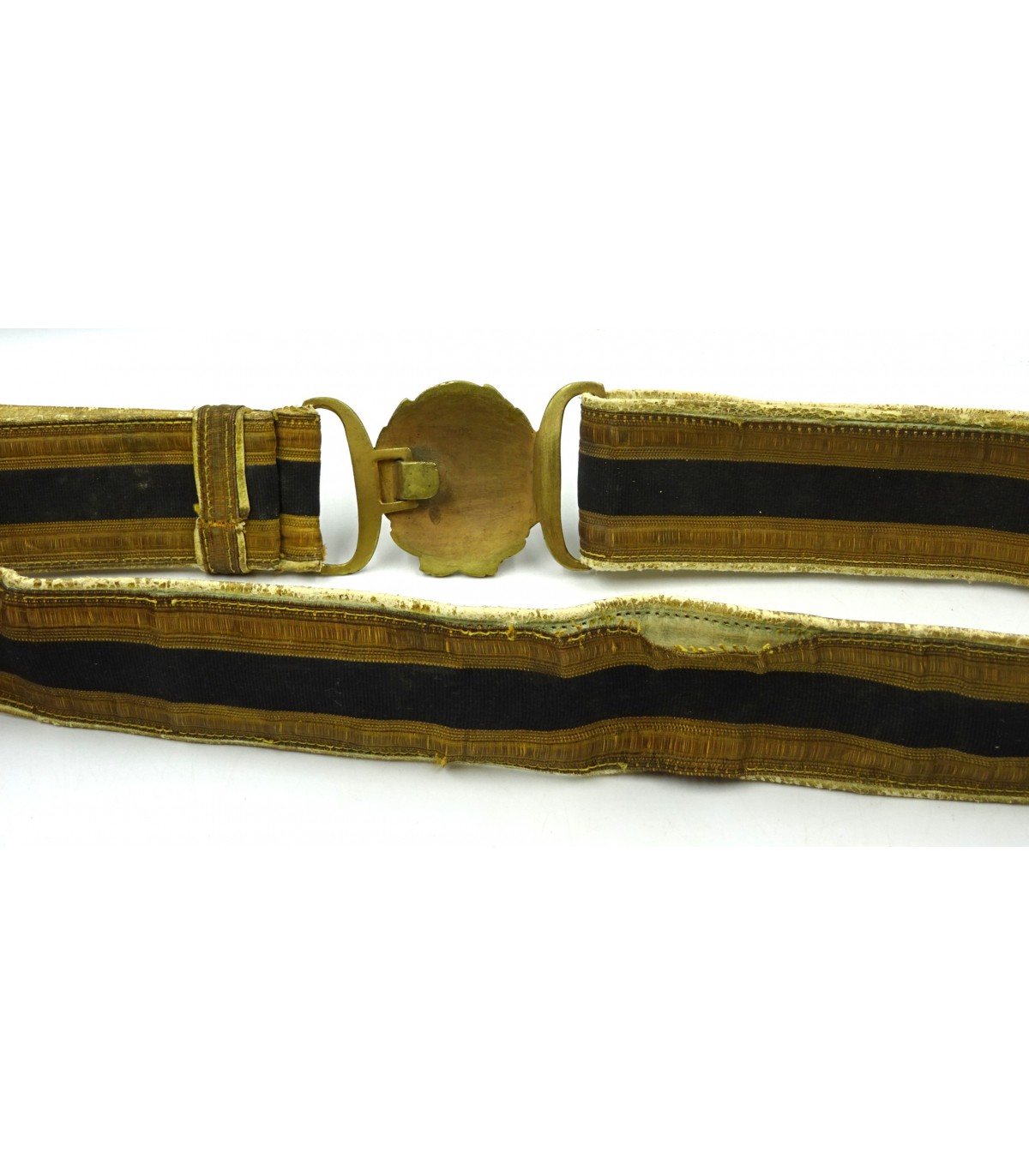 Brocard doré et noir sur socle de cuir blanc. Longueur 100. Boucle bronze. ABE.