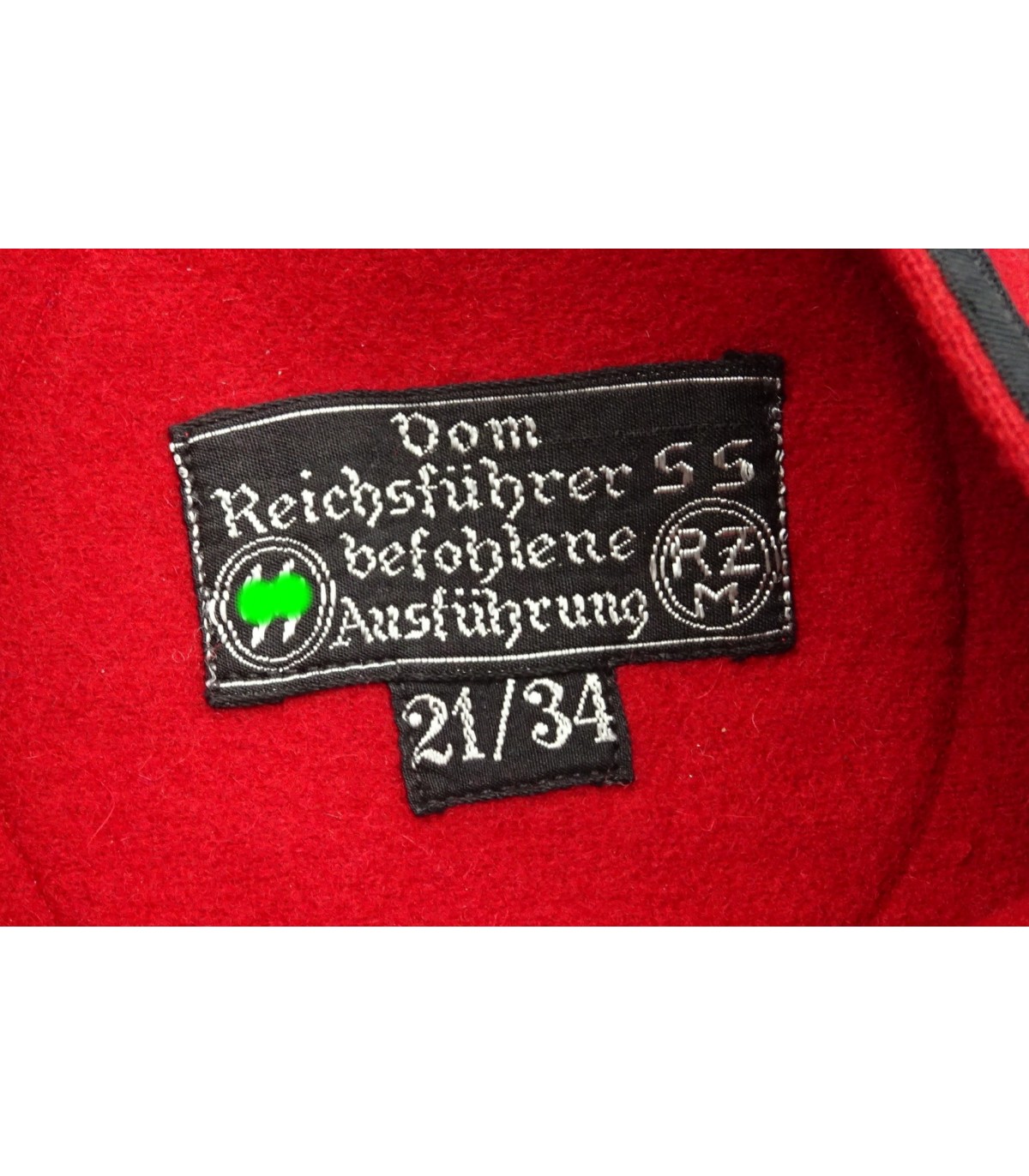 Laine. Centre surpiqué. Etiquettes tissées bevo 'Vom Reichsführer-SS befohlene Ausfürung - 21/34'. Un petit trou de mites au dos, sinon TBE.