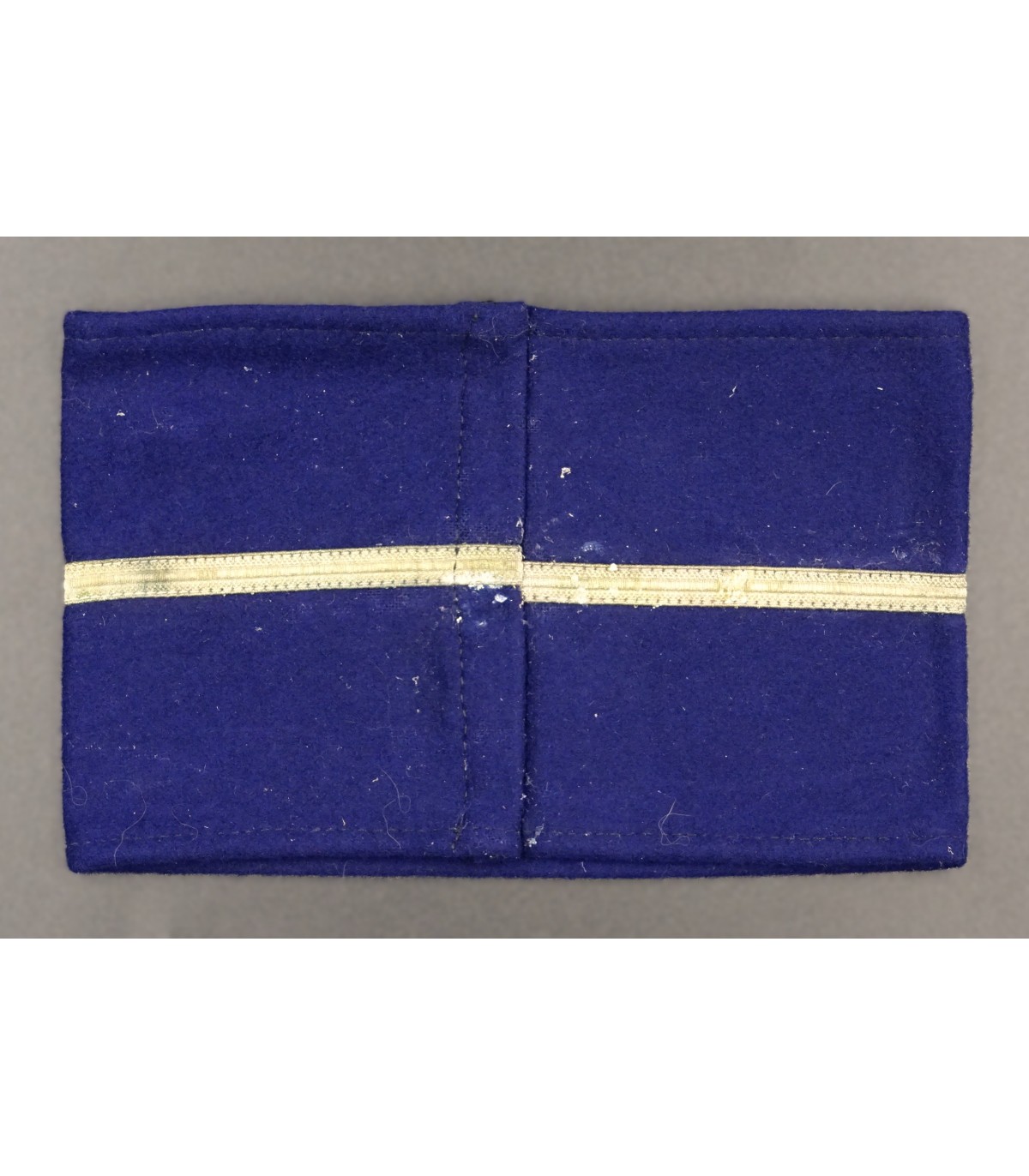 Motif central tissé bevo, fond laine bleu-marine. BE.