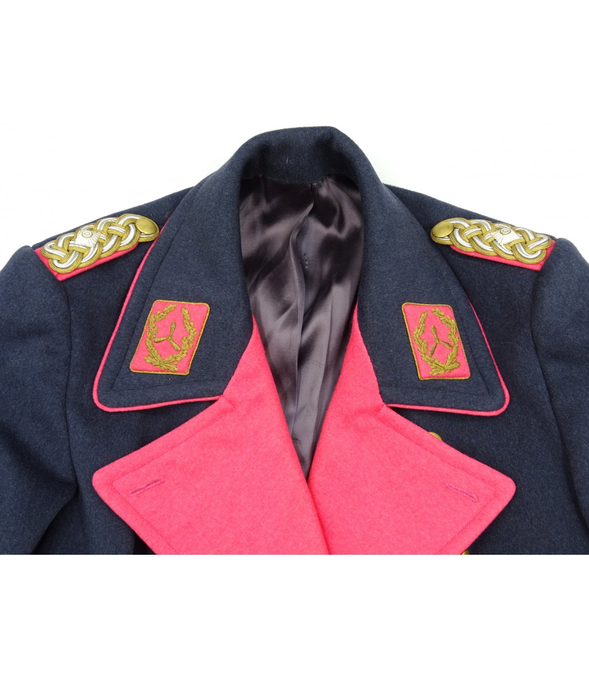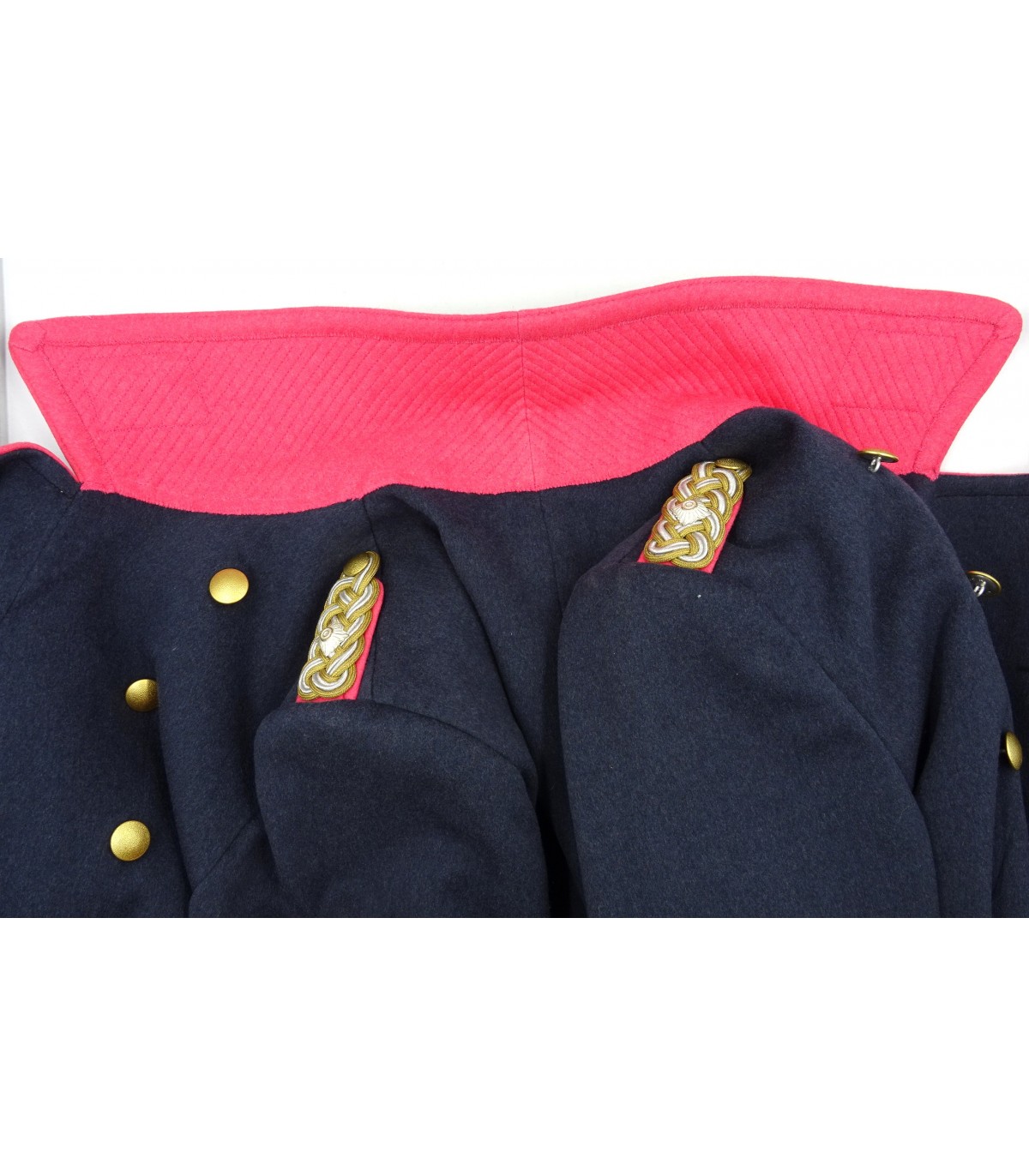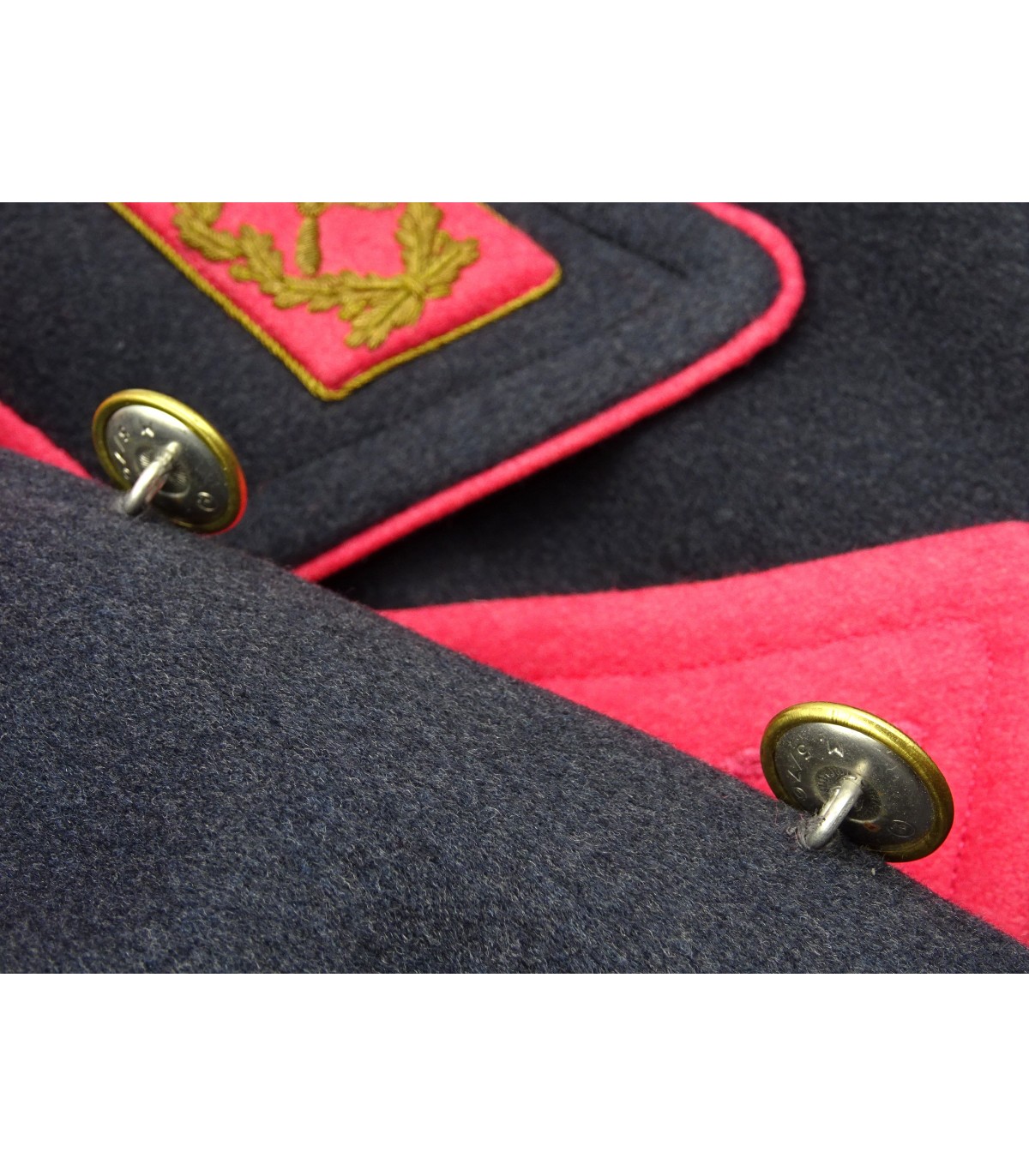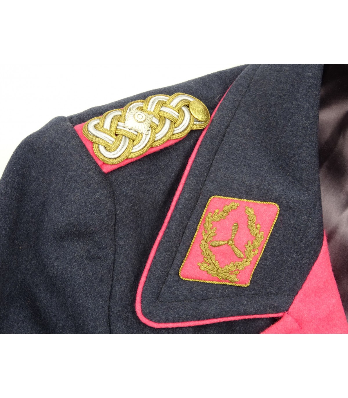 Leitender Fl. Chefingenieur, grade le plus élevé du corps des ingénieurs de la Luftwaffe. Selon nos recherches, seuls 2 généraux auraient été élevés à un grade aussi élevé. Doeskine gris LW, revers roses. Pattes d'épaules de Generalleutnant, pattes de col brodées main en canetille or sur fond rose. Boutons dorés. Etiquette de tailleur militaire Gustav Gläser - Chemnitz. Pièce de musée en état 'concours'.