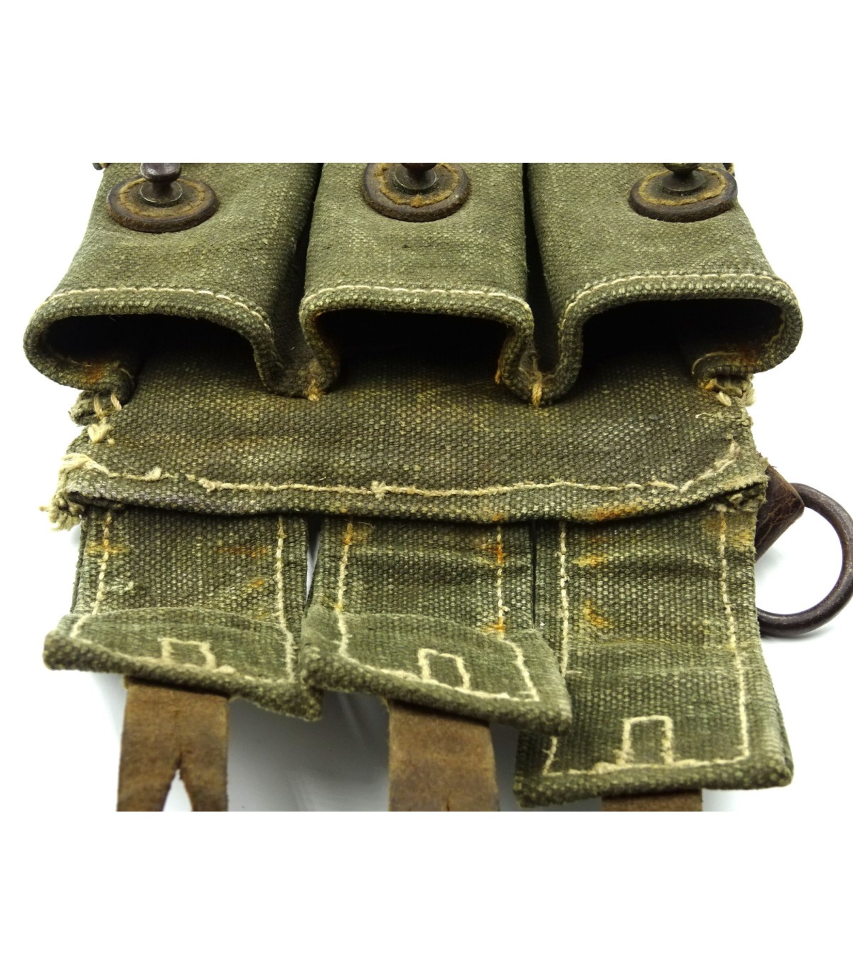 Toile feldgrau et cuir noir. Côté droit. Fabrication précoce en BE-TBE.