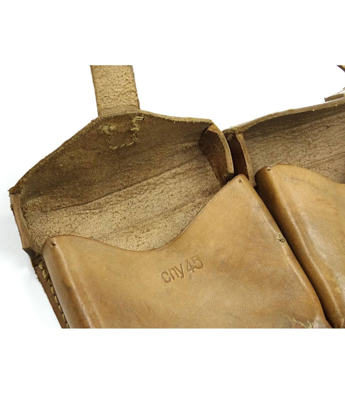 Cuir non-noirci. Marquage CNY 45. Petite patine générale. BE-TBE.
