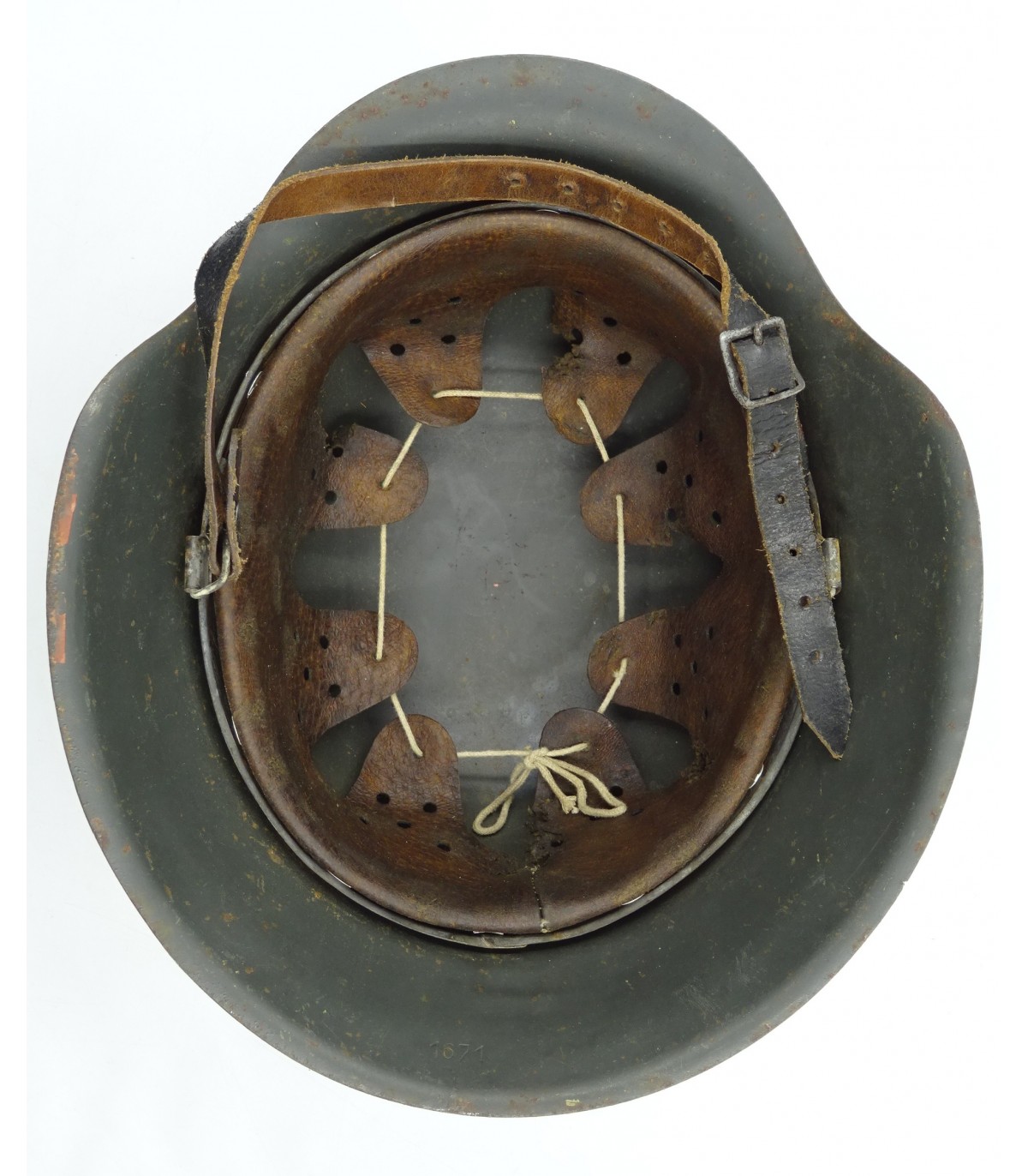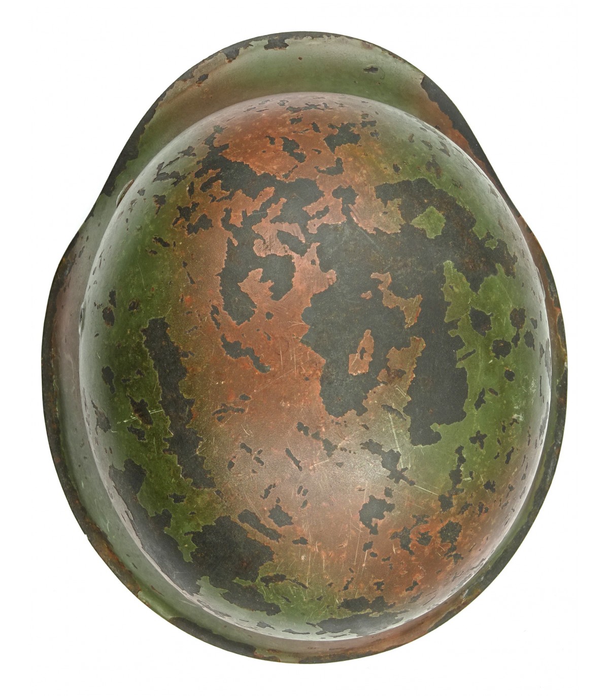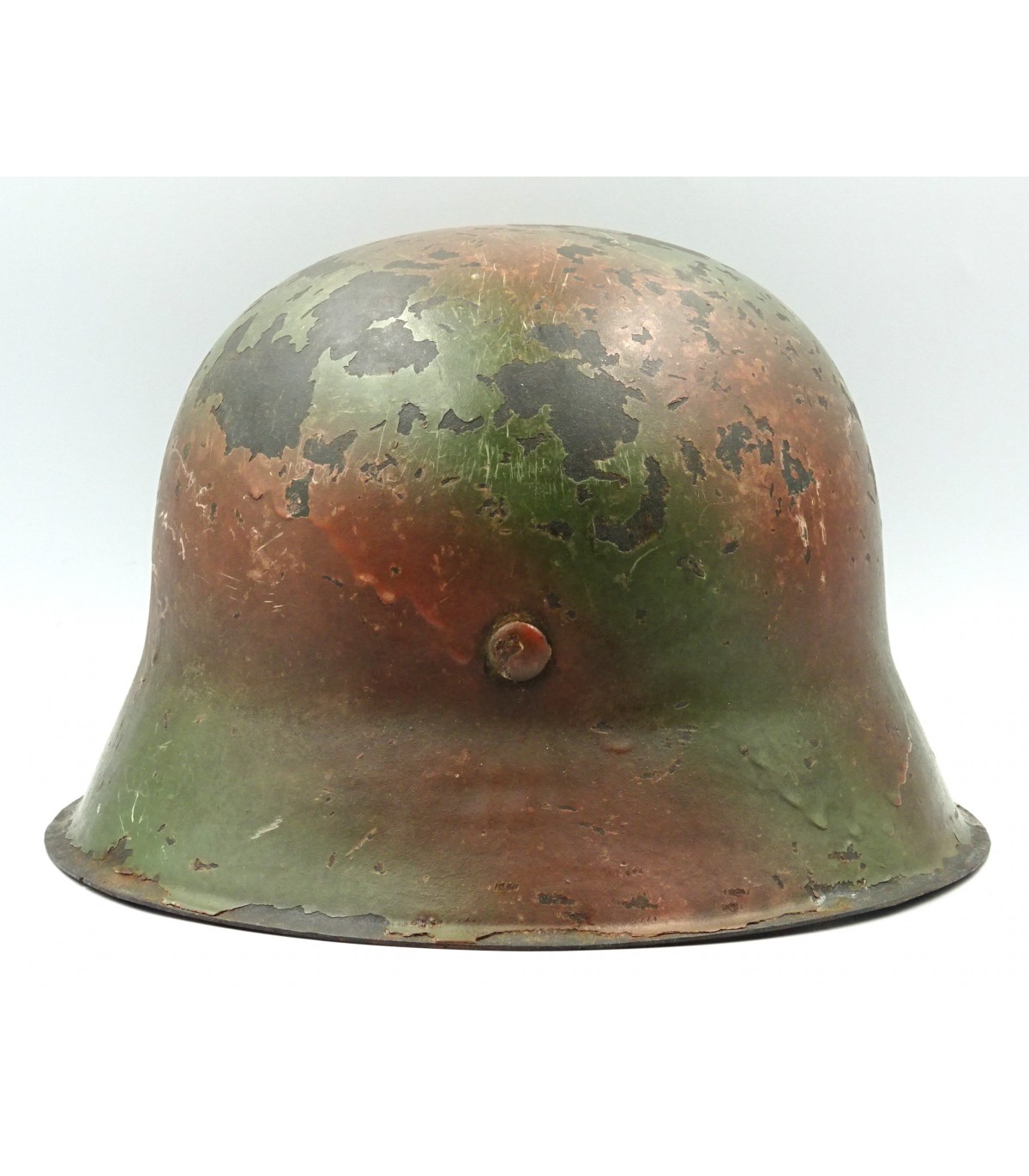 Superbe casque camouflé WH, NS64 #1671, coiffe en cuir de porc, jugulaire RBNr. Camouflage brun et vert à 80-90%. Aigle WH à 80-90%. Un must dans une collection de casques. BE-TBE.