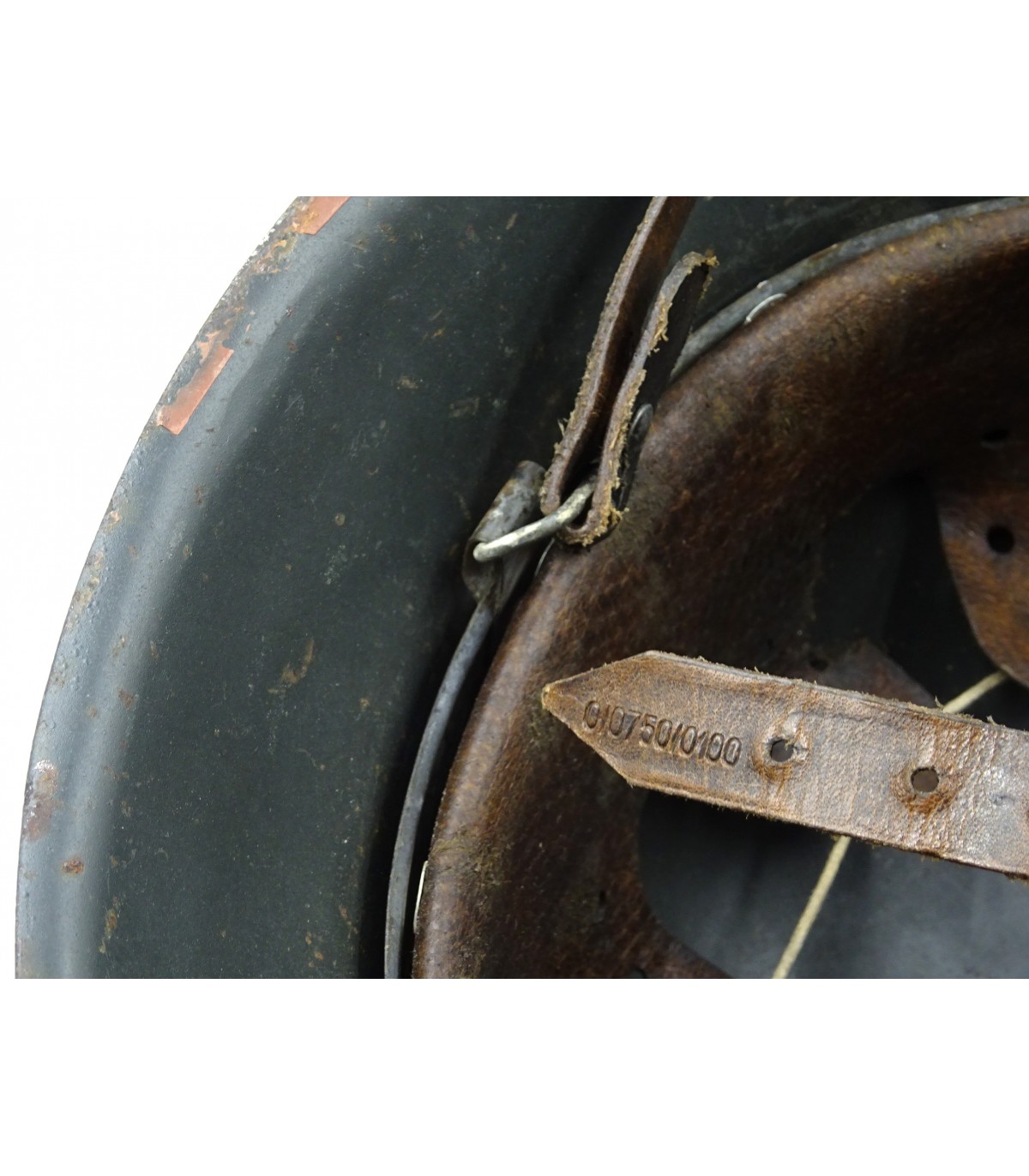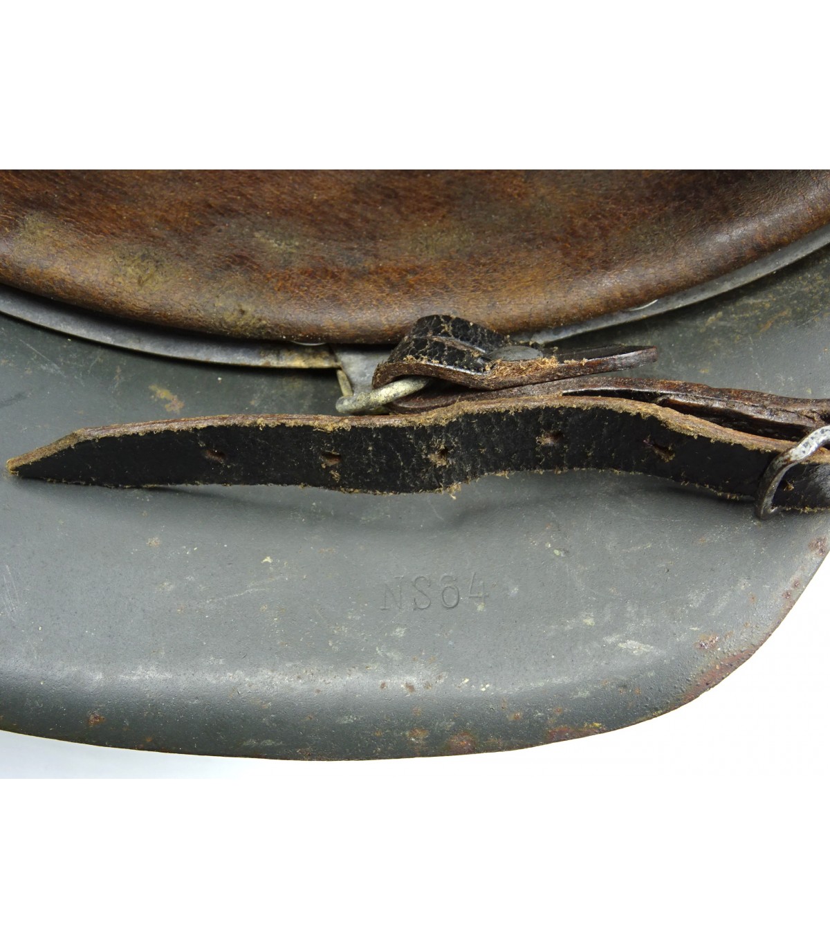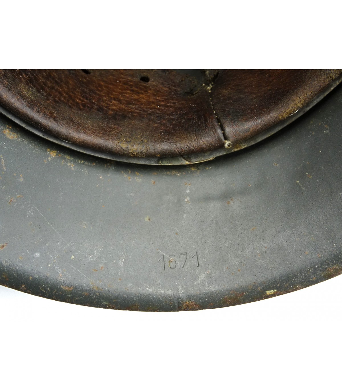 Superbe casque camouflé WH, NS64 #1671, coiffe en cuir de porc, jugulaire RBNr. Camouflage brun et vert à 80-90%. Aigle WH à 80-90%. Un must dans une collection de casques. BE-TBE.