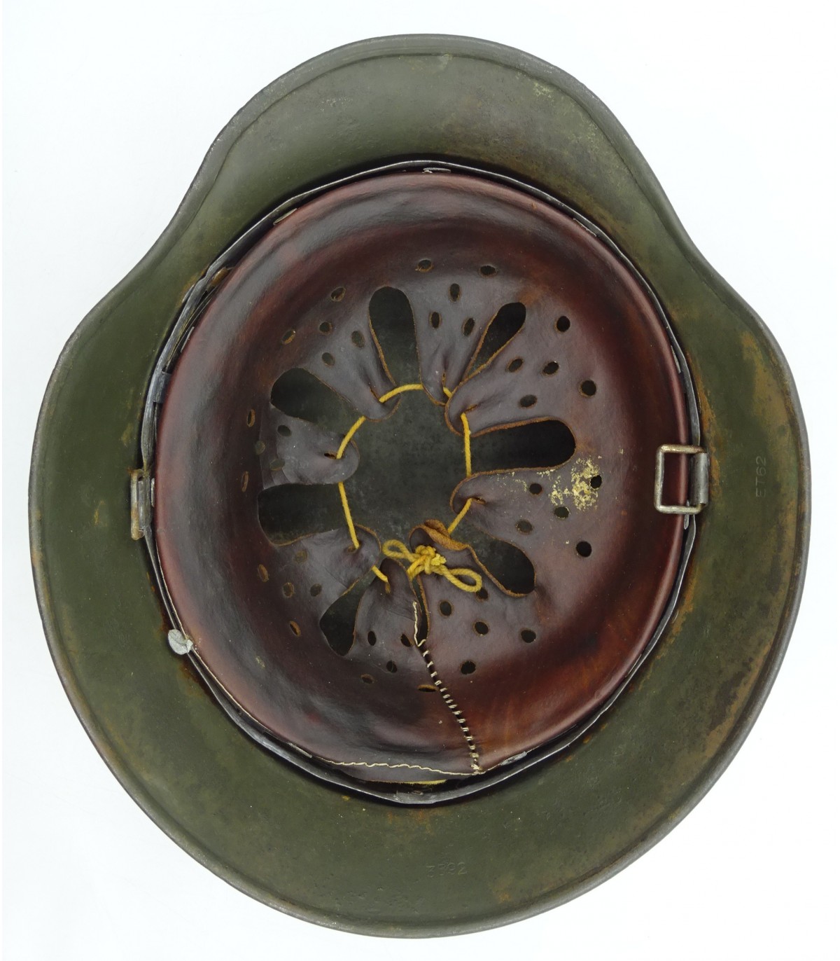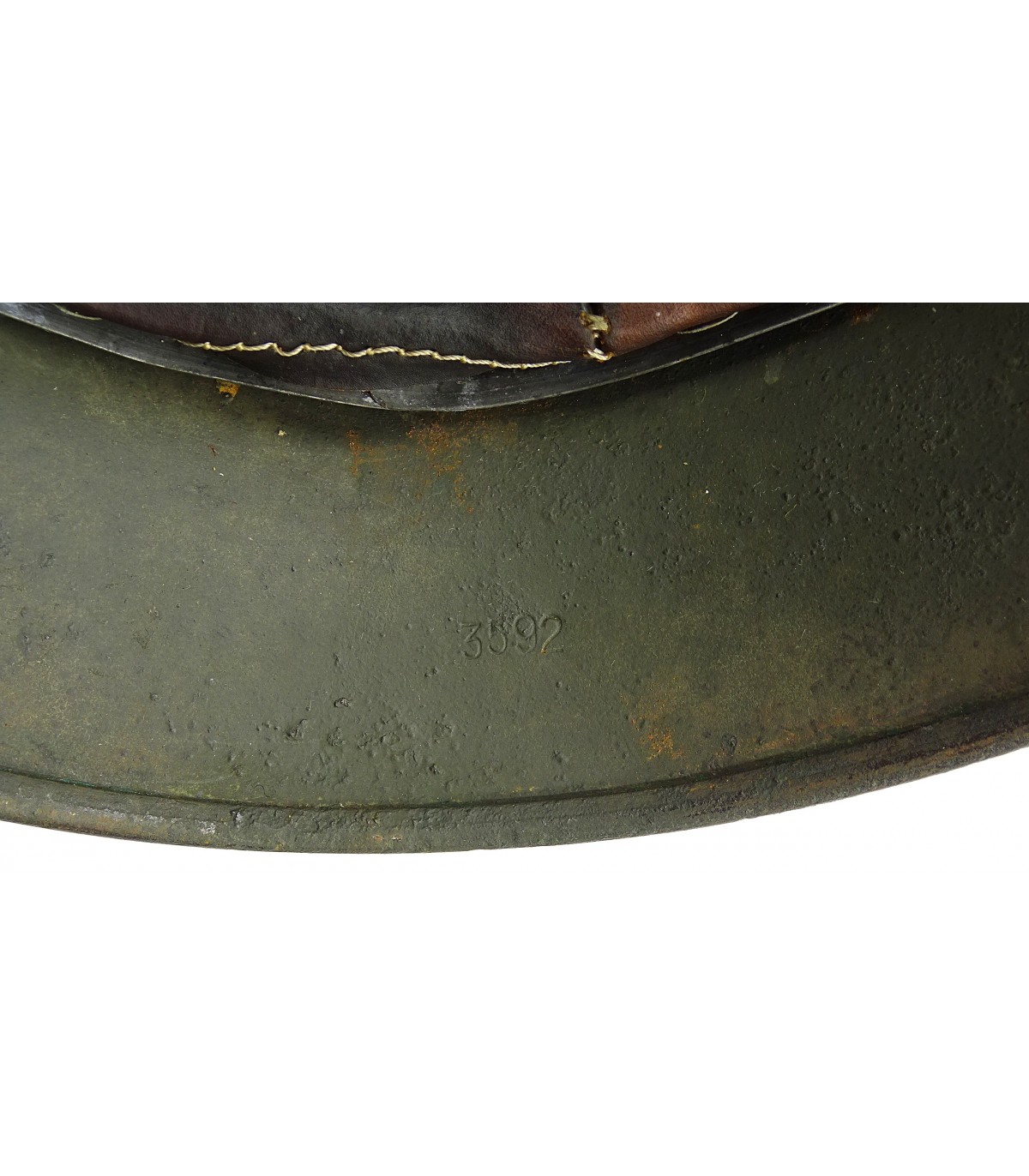 Complet sauf jugulaire. ET62, #3592. Taille 55. Bonne peinture feldgrau à 80-90%. Coiffe EM, sinon BE.