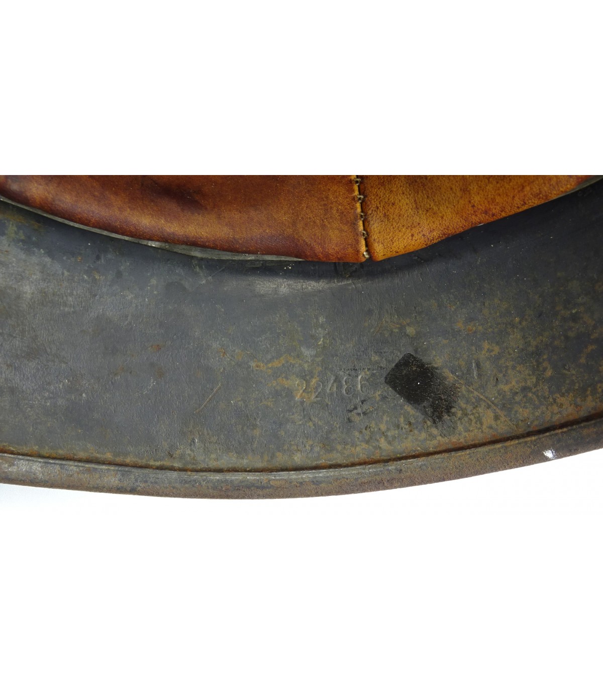 Complet sauf jugulaire. SE66, #22486. Taille 59. Cuir de coiffe assez clair et souple. Belle peinture gris-LW à 90%. Aigle LW 2e type à 80%. BE-TBE.