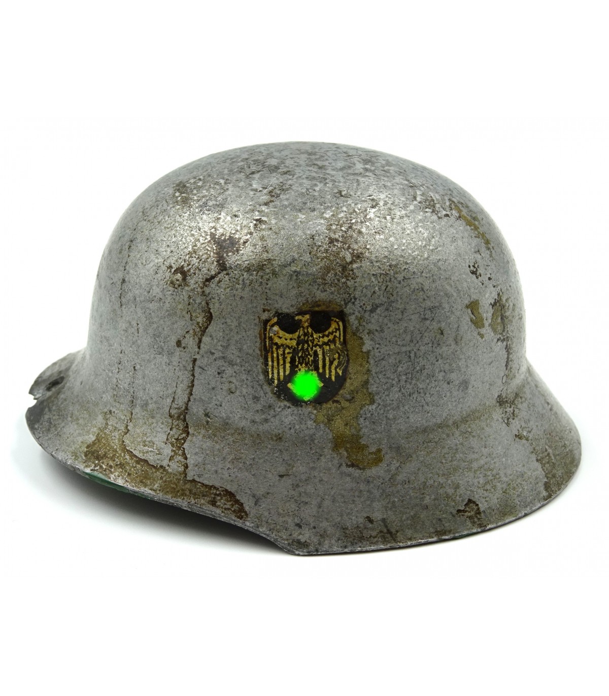 Aluminium. Deux insignes: aigle à 95%, tricolore à 30%. Un trou sur la visière pour le suspendre. ABE.
