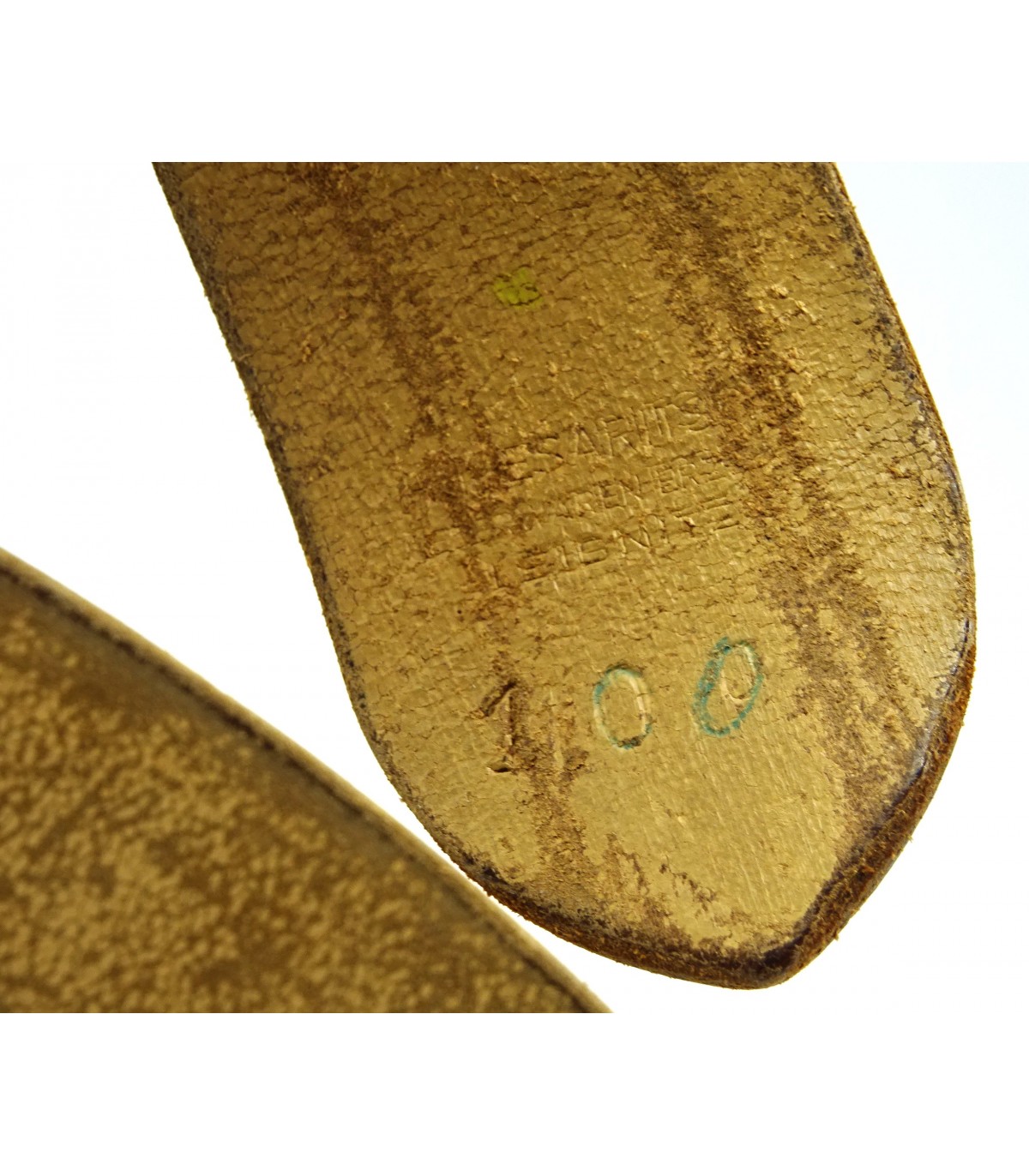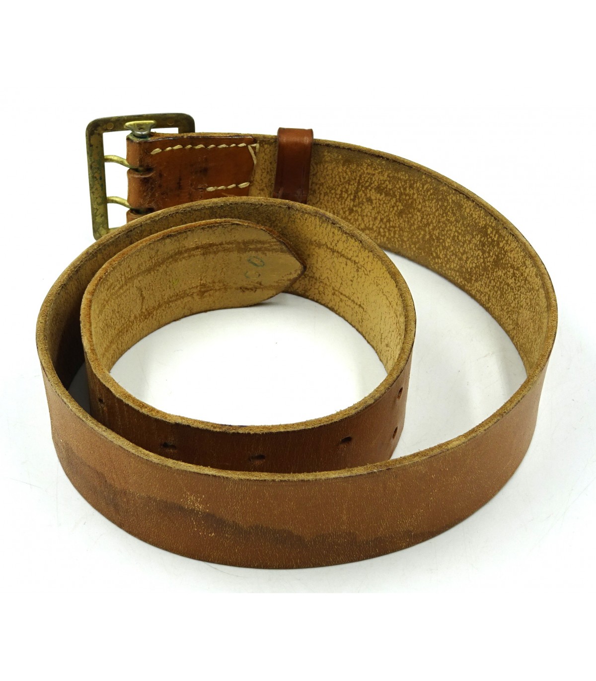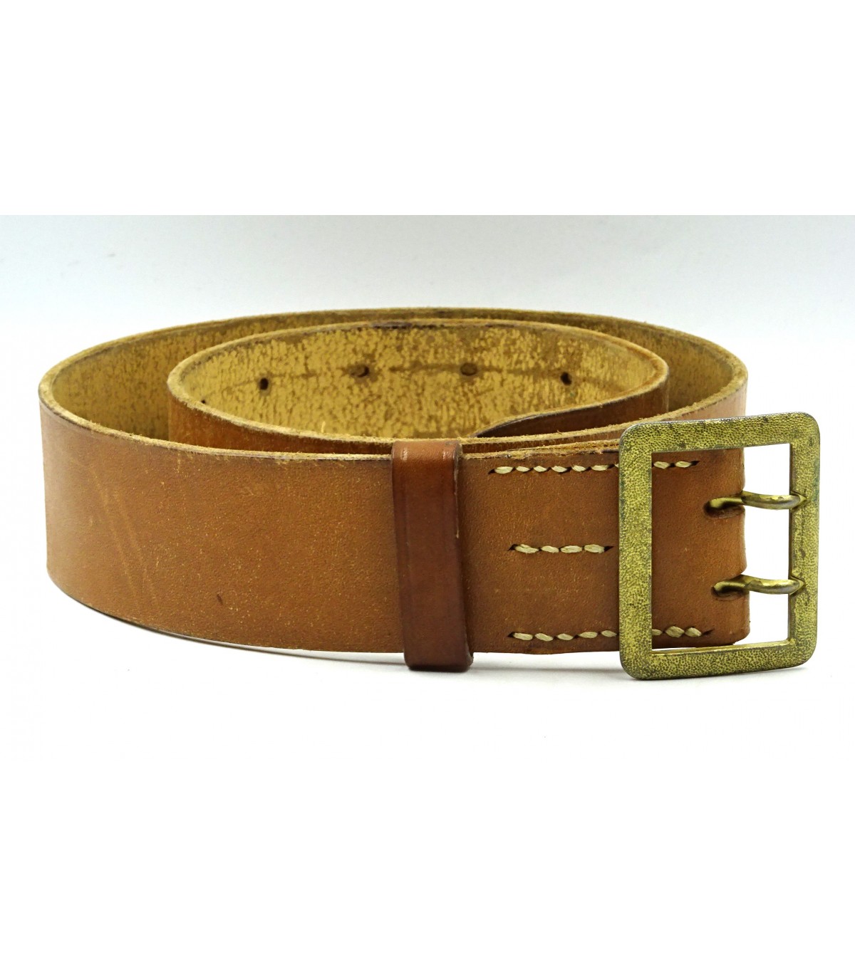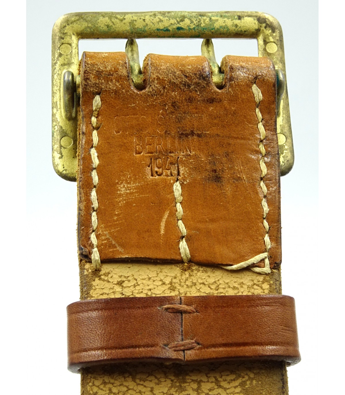45mm. Boucle à 2 ardillons dorée. Marquage du fabricant Otto Sindel Berlin 1941 et du fournisseur du cuir. Longueur 100cm. Peut convenir pour compléter tenue des formations du NSDAP, SA ou PL notamment, ou général WH/LW. TBE.