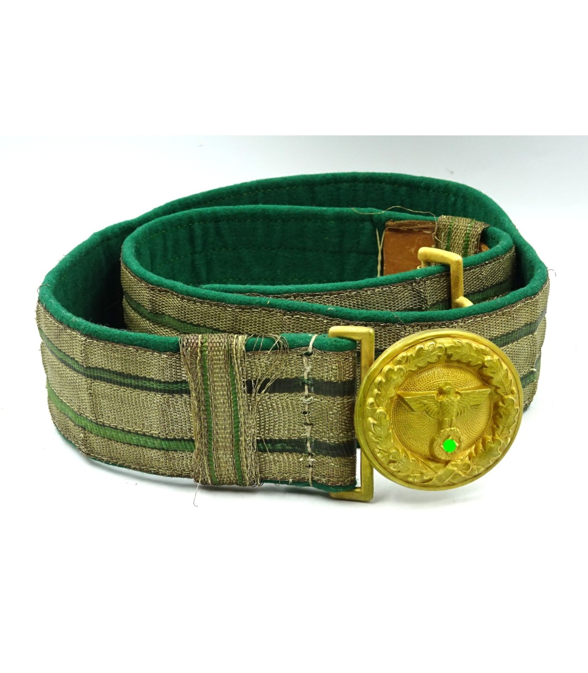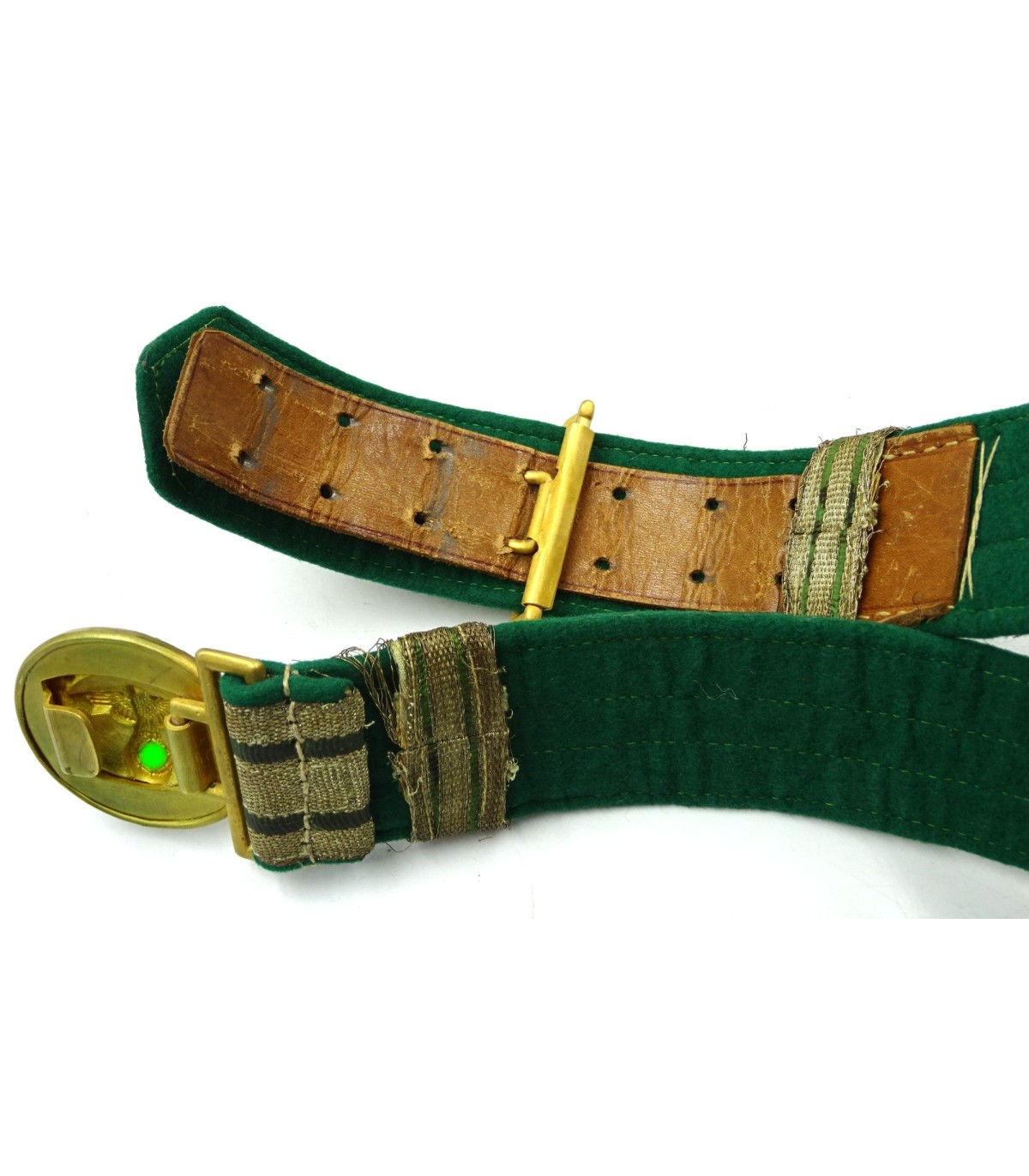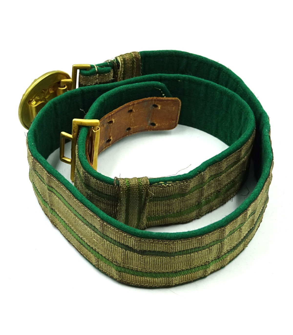 Boucle aluminium doré. Brocart argent et vert. Dessous drap d'insigne vert. Avec ses 2 passants. Longueur 103cm. Rare. BE.