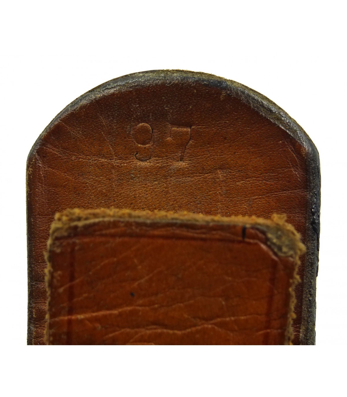 Boucle en 2 parties. Cuir verni, longueur 97cm, logo fabricant. BE.
