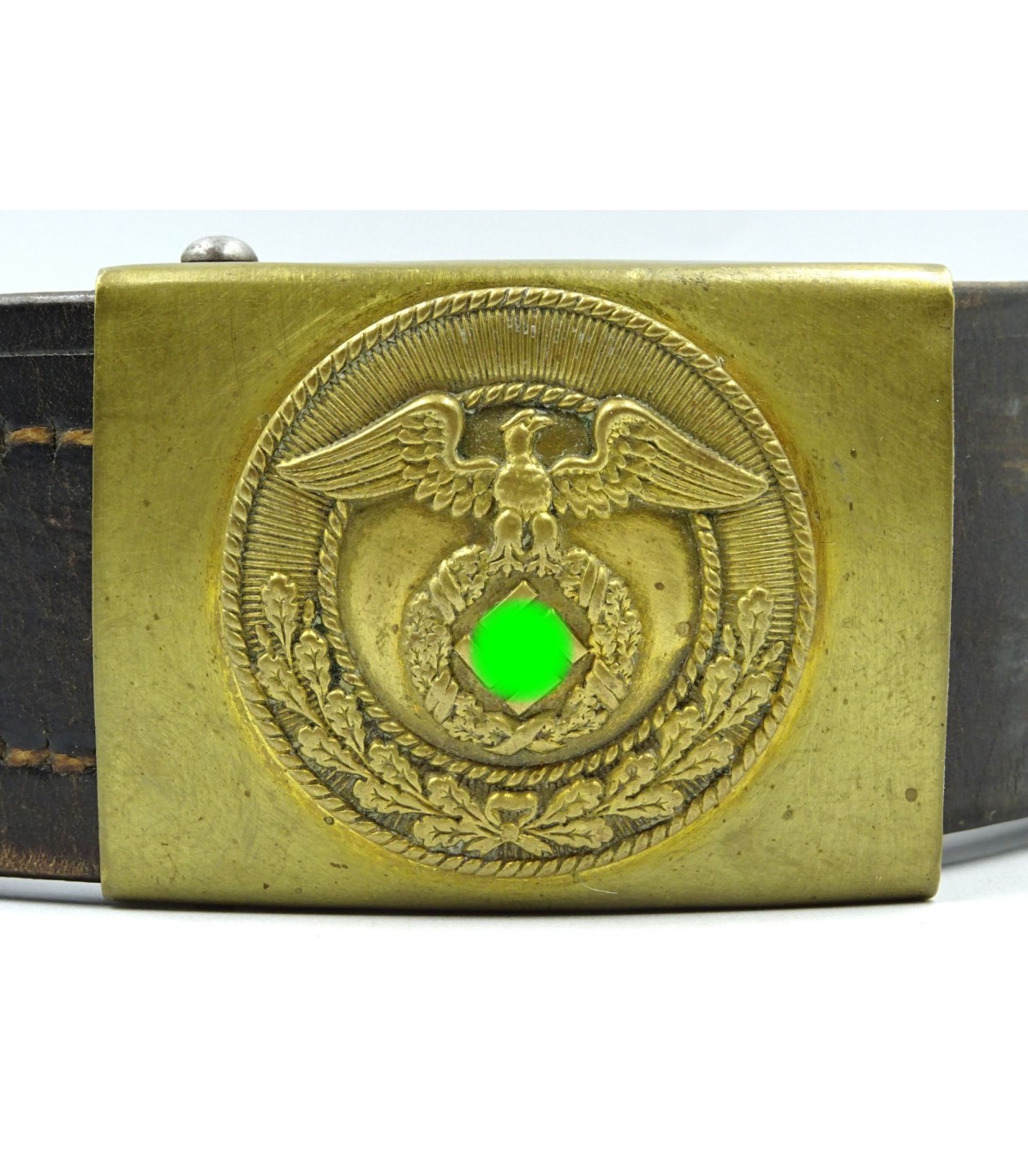 Boucle laiton, svastika oblique. Longueur 110. BE.