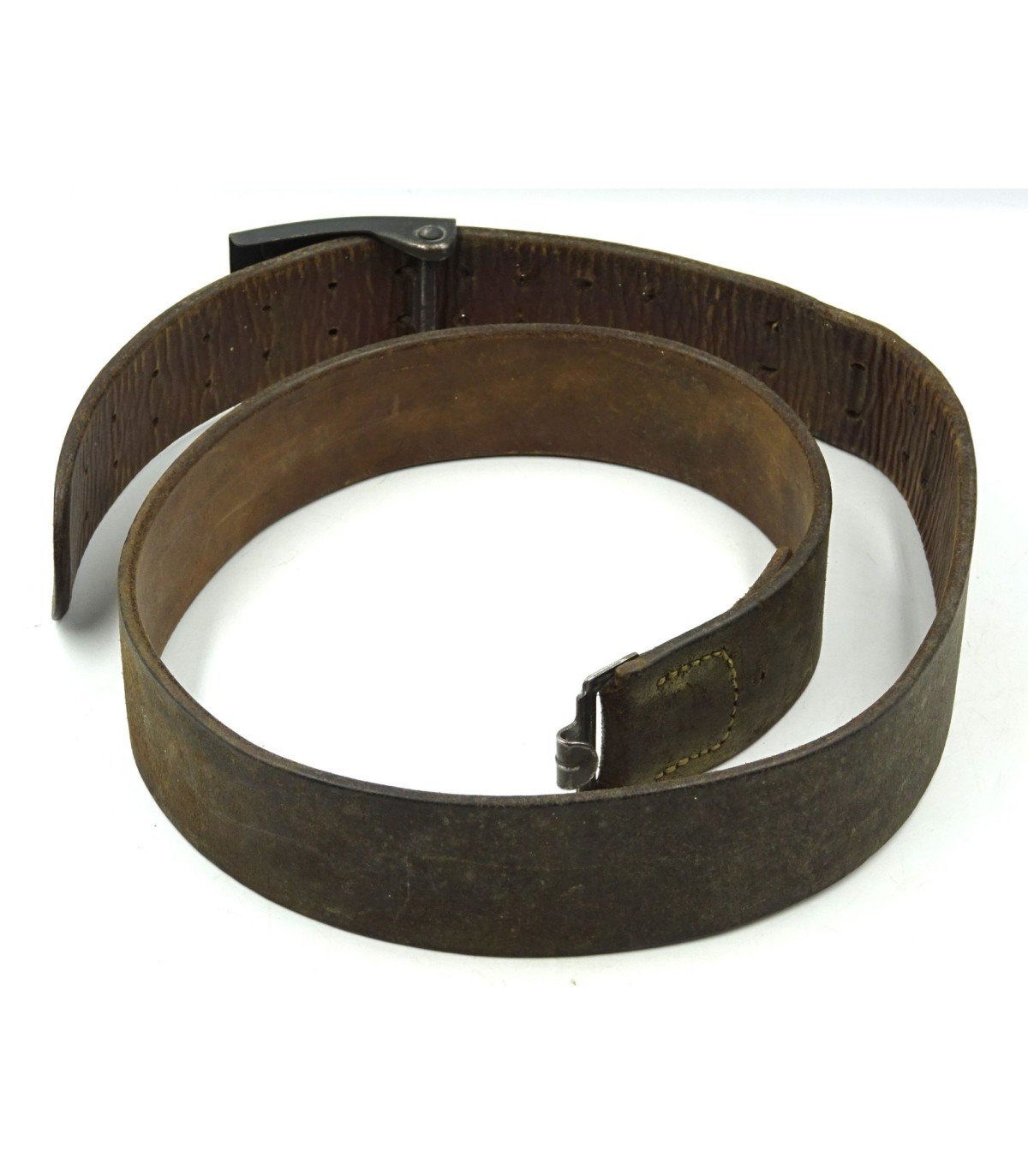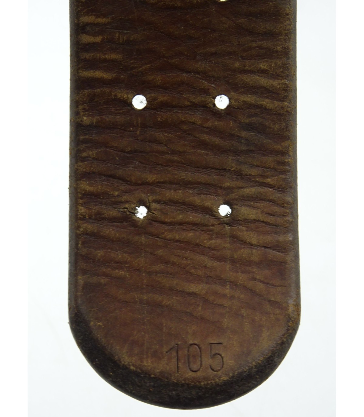 Boucle acier, 2e modèle, peinture gris-LW à 80%, TBE. Cuir modèle 43, longueur 107cm. BE-.