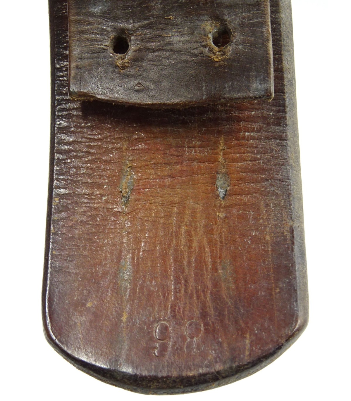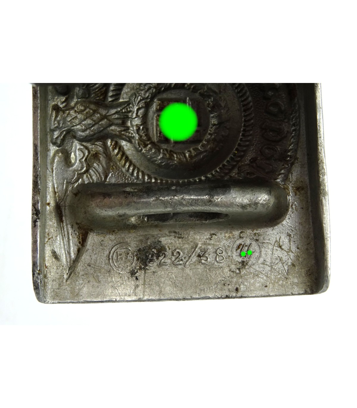 Boucle alu, RZM 822/38 SS, BE-TBE. Cuir marqué SS 2/40 RZM, crochet alu, longueur 100cm. BE-TBE. Rare ensemble.