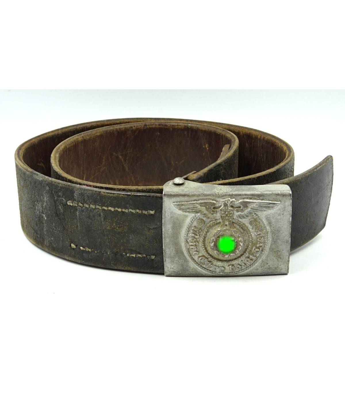 Ceinturon SS troupe, boucle acier Assmann, cuir marqué