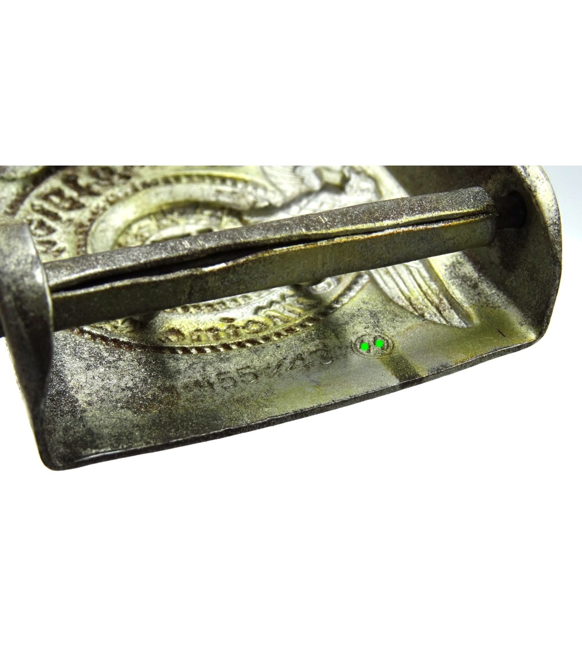 Boucle acier RZM 155/43 SS, peinture à 70%, TBE. Cuir marqué SS-RZM, crochet acier, longueur 95cm. BE-TBE.