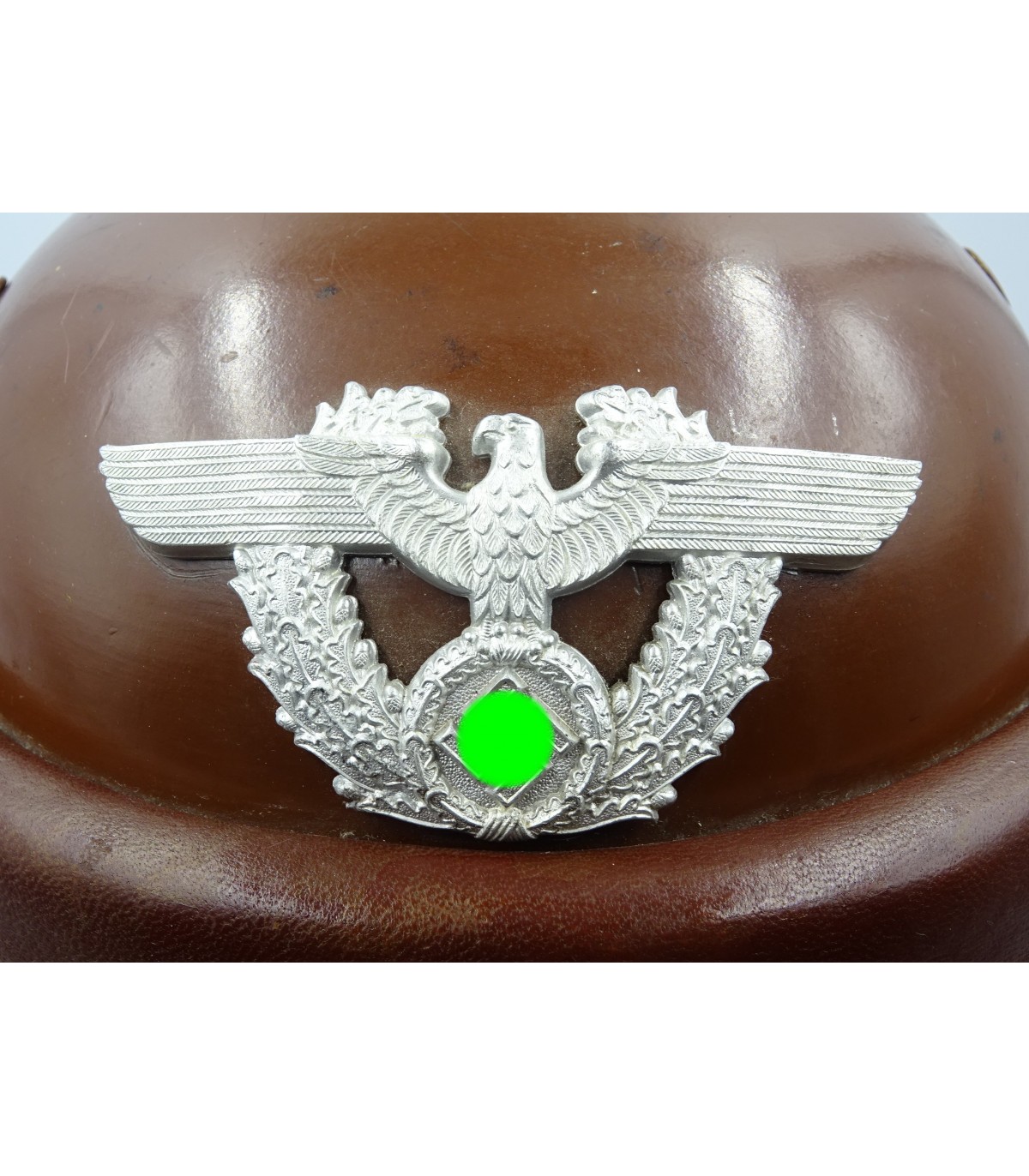 Cuir marron, aigle frontal alu. Jugulaire large et nuquière. Etiquette Erel tissée. Superbe !