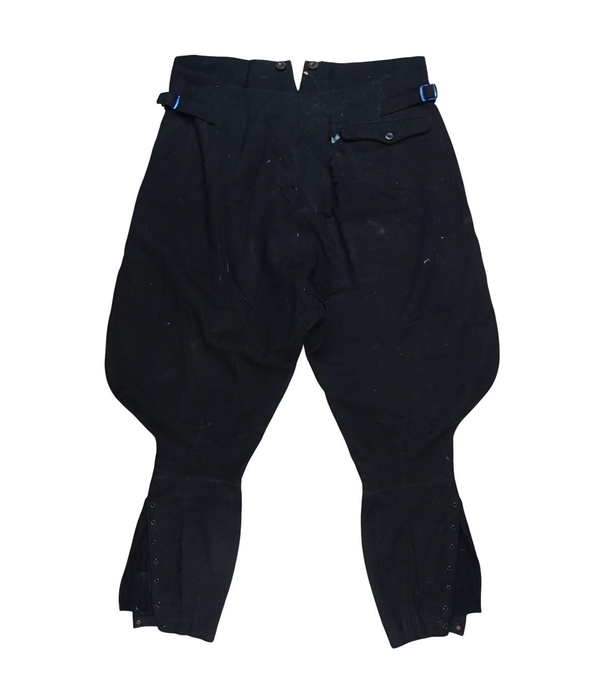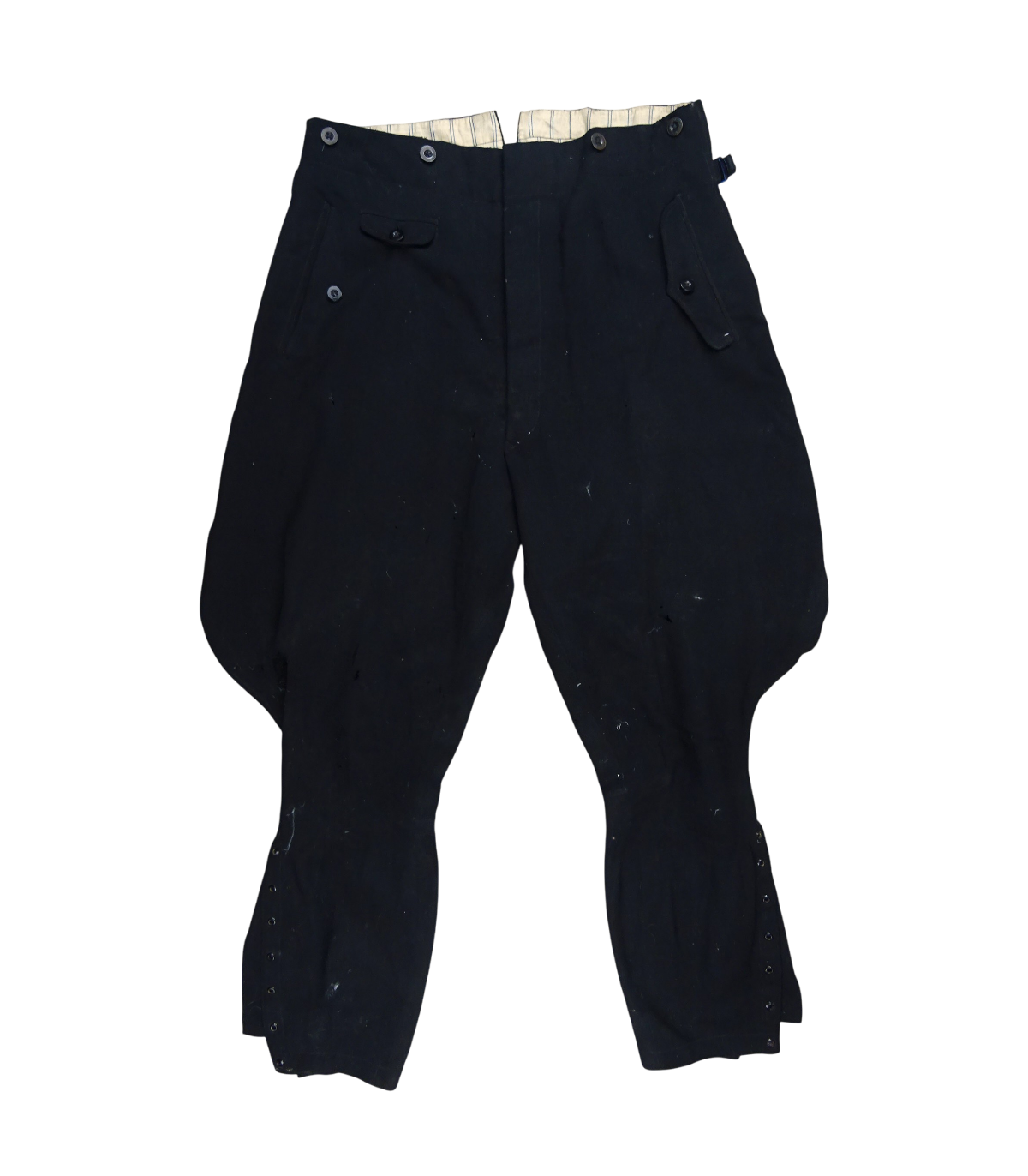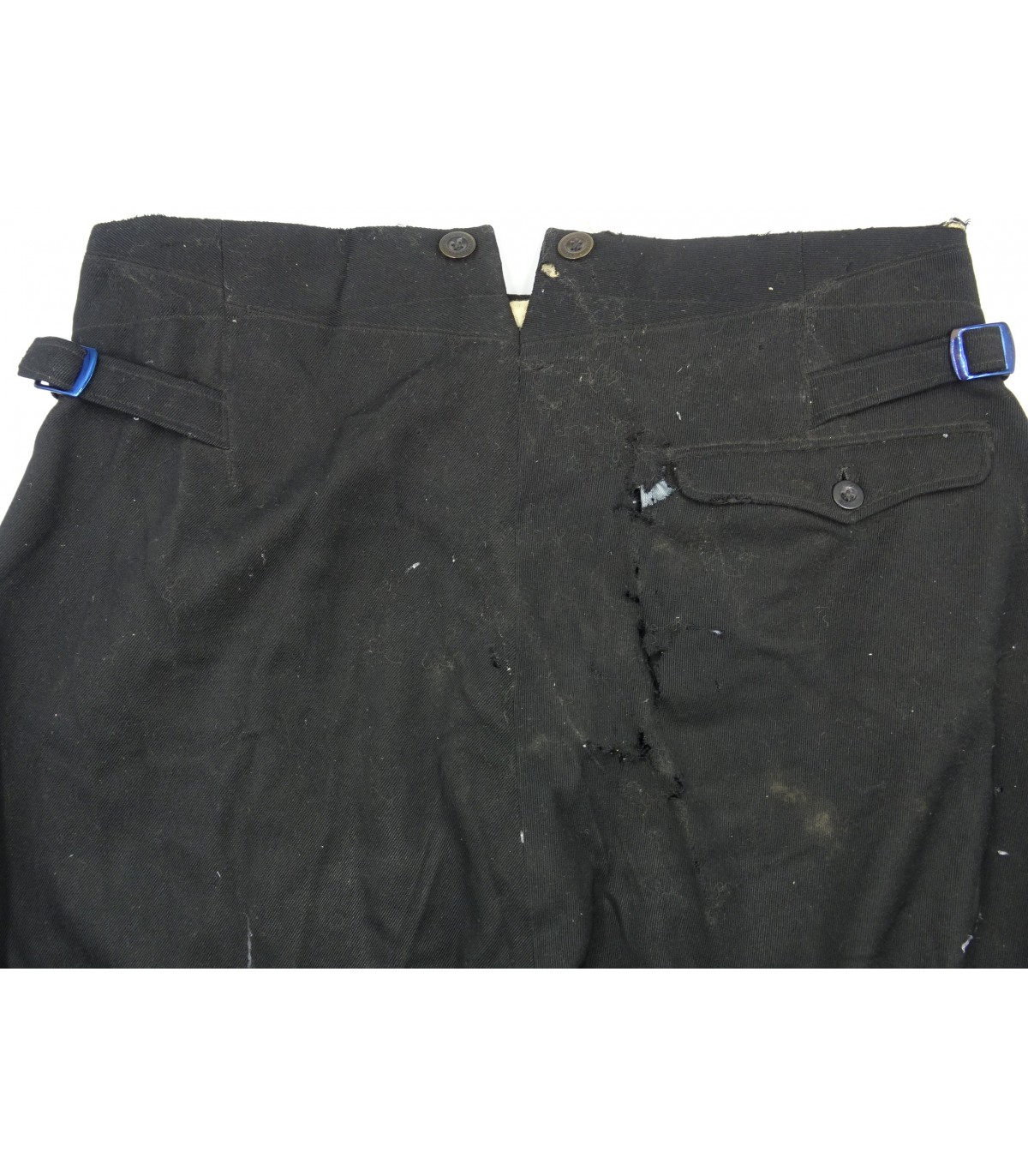 Tricotine noire. Etiquette SS-Hose sous poche arrière. Tour de taille 94cm. Très nombreux trous de mites, surtout à larrière, devant présentable. EM.