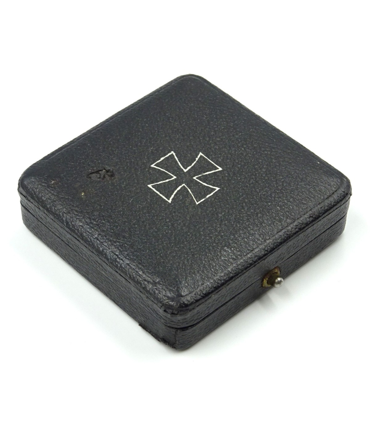 Belle croix de fer précoce en maillechort. Epingle plate. Bonne laque noire à 100%. En coffet décoré de la croix de fer. BE-TBE.