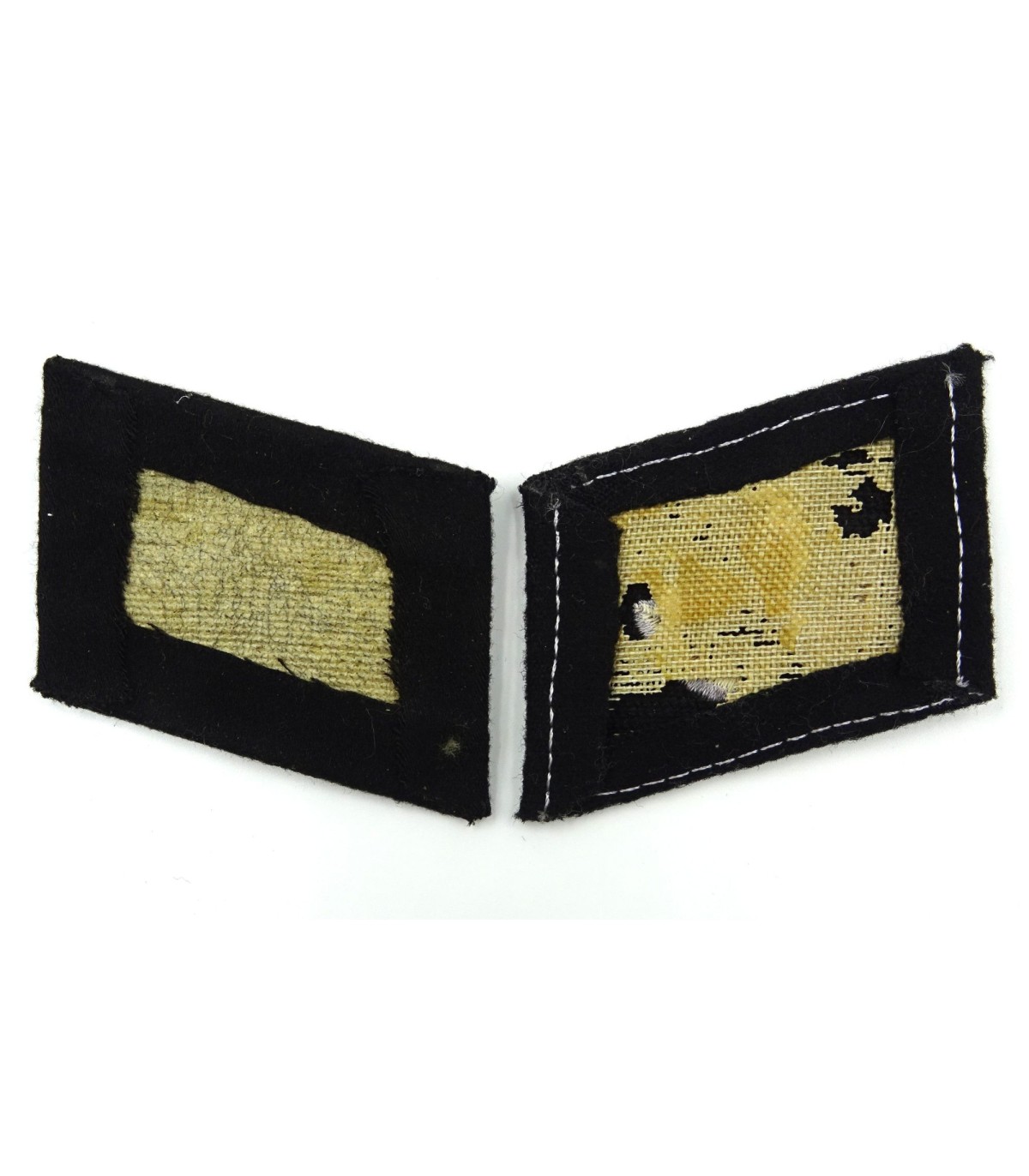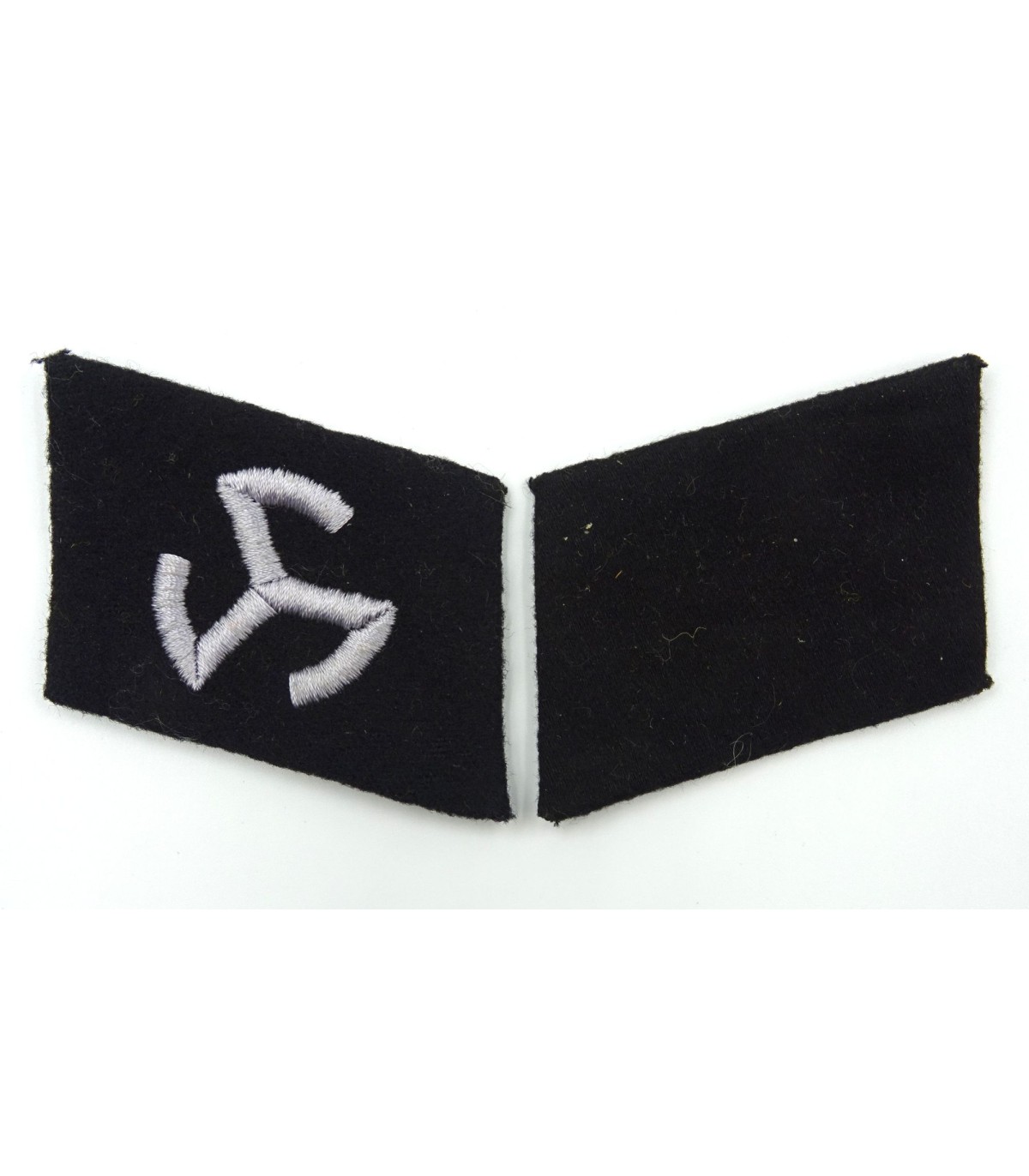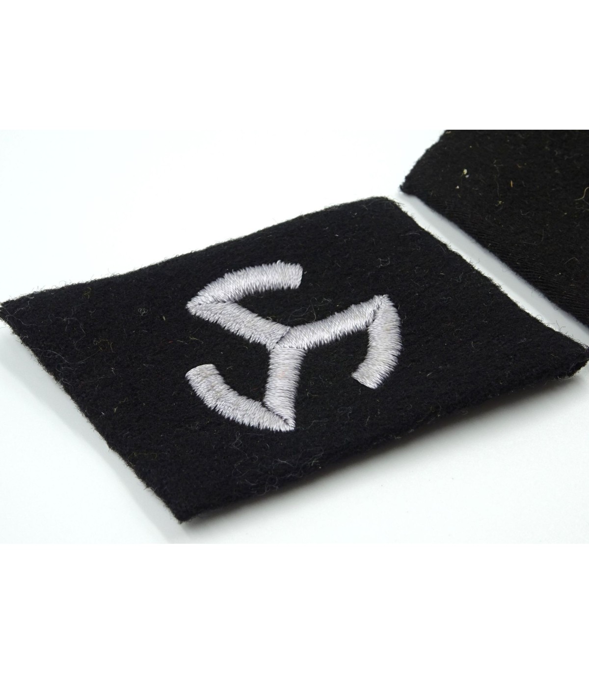 Broderie machine sur fond de laine noire. Provenance atelier de confection d'uniformes de la Waffen-SS de Dachau. TBE.
