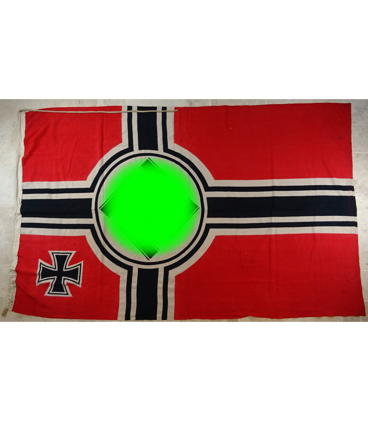 Etamine de laine. Renfort latéral et cordon de fixation. Marquage Reichskriegsflagge 1,5x2,5. Aigle KM. Quelques trous de mites, belle présentation. BE-TBE.