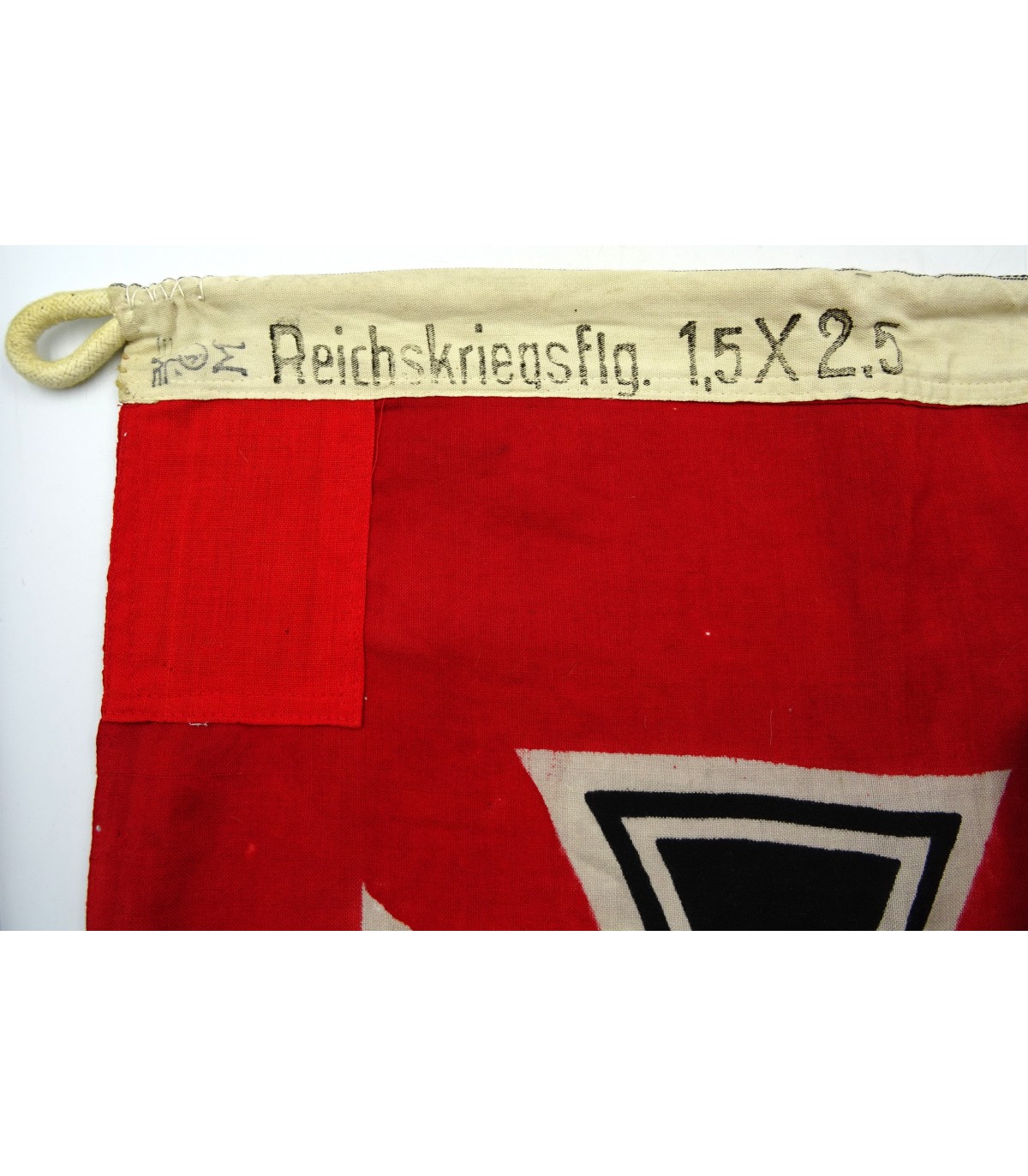 Etamine de laine. Renfort latéral et cordon de fixation. Marquage Reichskriegsflagge 1,5x2,5. Aigle KM. Quelques dommages de mites, belle présentation. ABE.