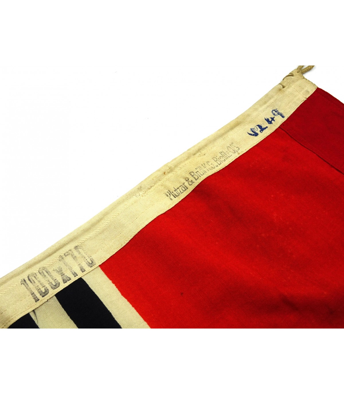Belle flamme de guerre en étamine de laine de format 100x170 (format le plus fréquent pour les U-Boot) du fabricant Plutzar & Brüll K.G. Bielitz O/S, réceptionné par la Kriegsmarine, marqué 'U.249'. Ce sous-marin s'est rendu à Portland le 10 mai 1945. Provenance famille d'un marin anglais. Voir: https://fr.wikipedia.org/wiki/Unterseeboot_249. BE-TBE.