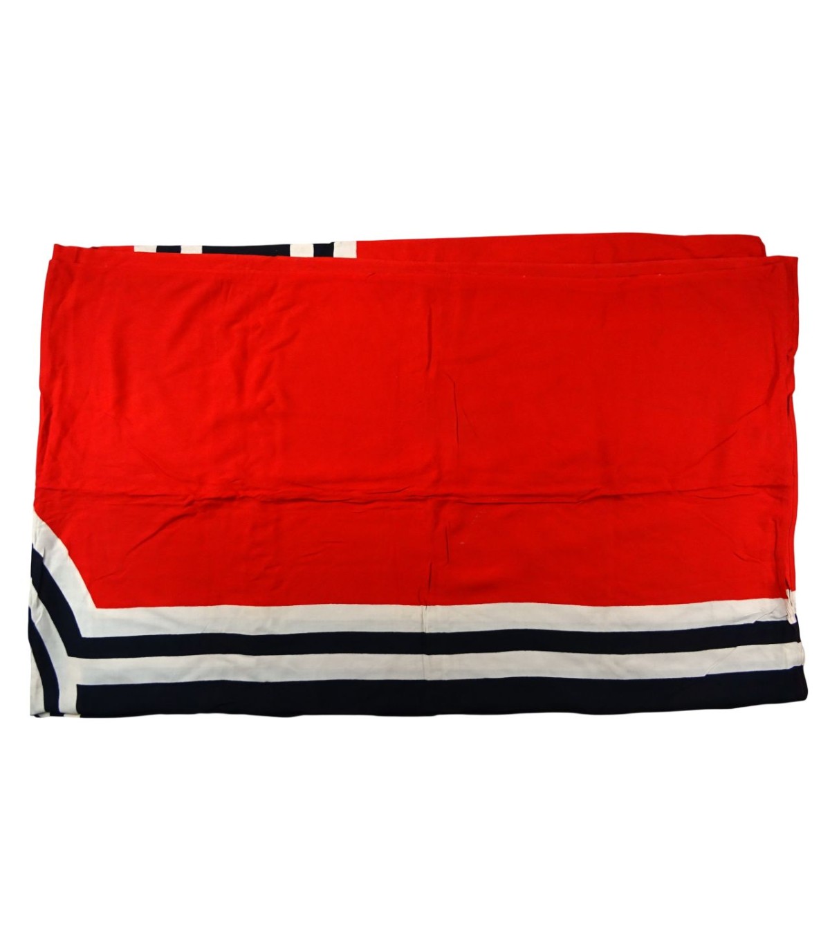 Splendide flamme de guerre de grand format, 3m30 x 2m20 en étamine de laine, bande de renfort et cordon de fixation, en état de conservation exceptionnel (aucun trou de mites ni taches). Très rare dans cet état.