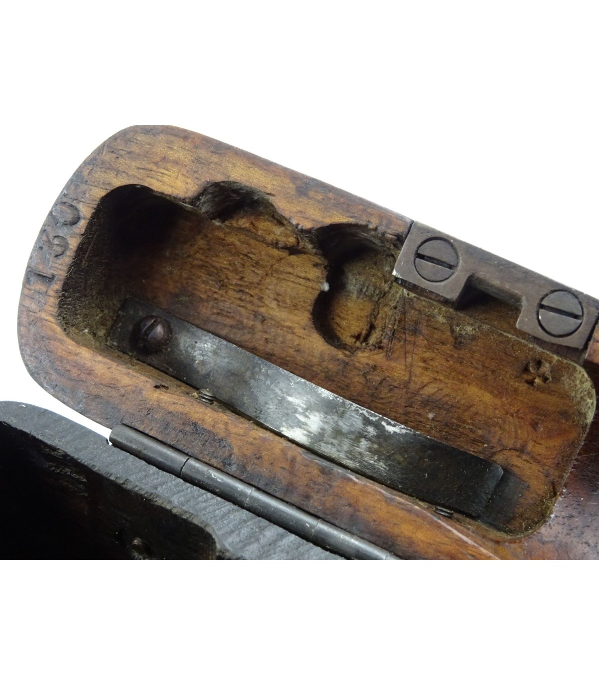 Beau bois, pièces métalliques non oxydées, dont une marquée 130. BE-TBE.