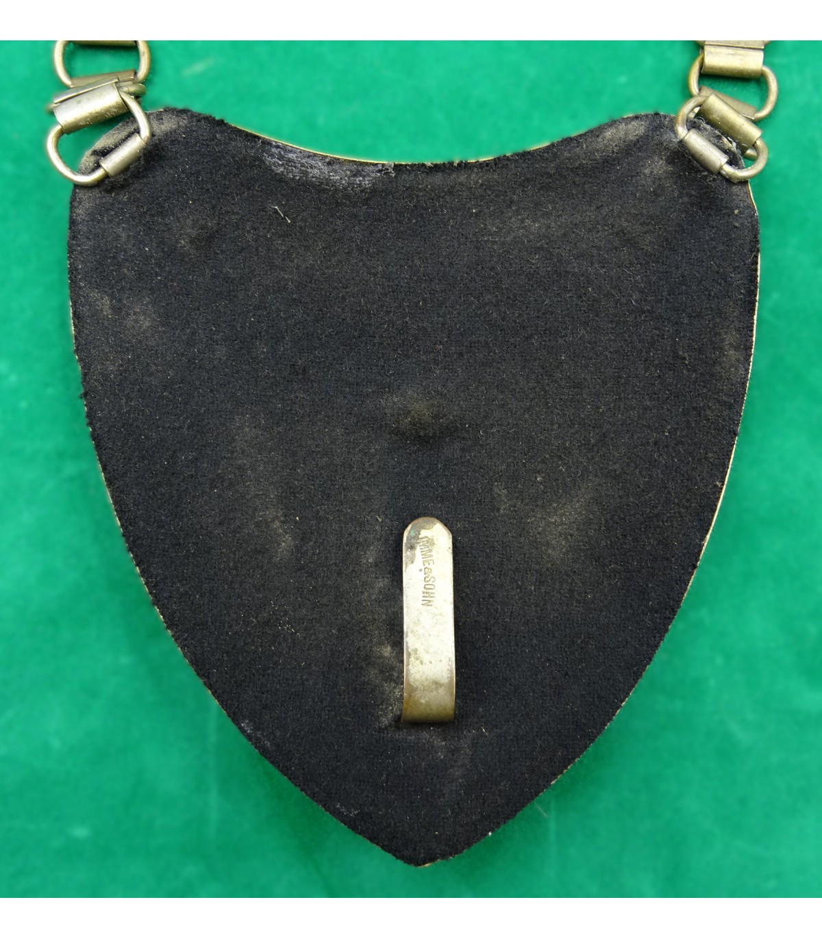 Fabrication précoce en maillechort. Complet avec sa chaine. Patte de boutonnage marquée JMME & Sohn. Patine. BE-.
