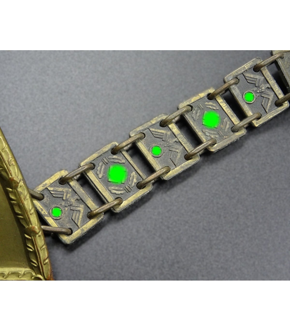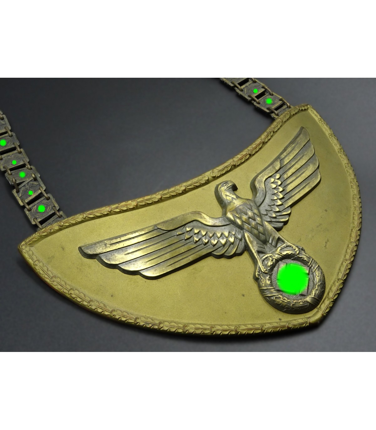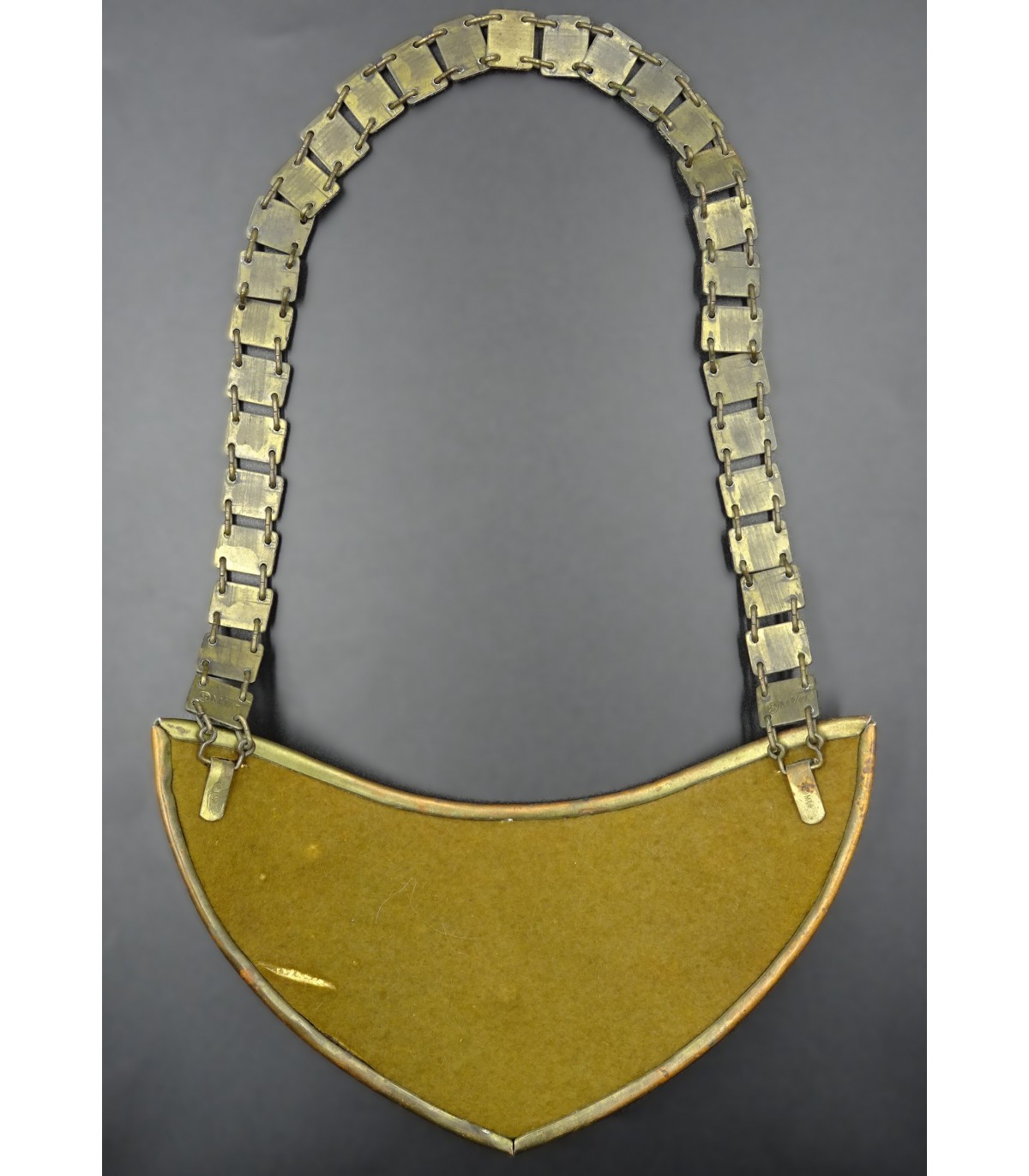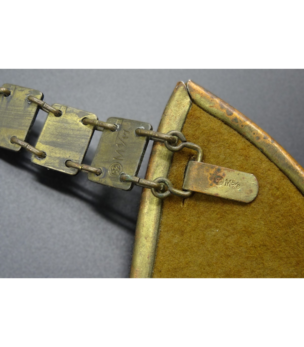 Superbe et impressionnant attribut de fonction du porte-drapeau en aluminium finition bronze. Doublure feutrine brune, patte de fixation RZM M5/6. Fabricant de la chainette RZM M1/17. BE-TBE.