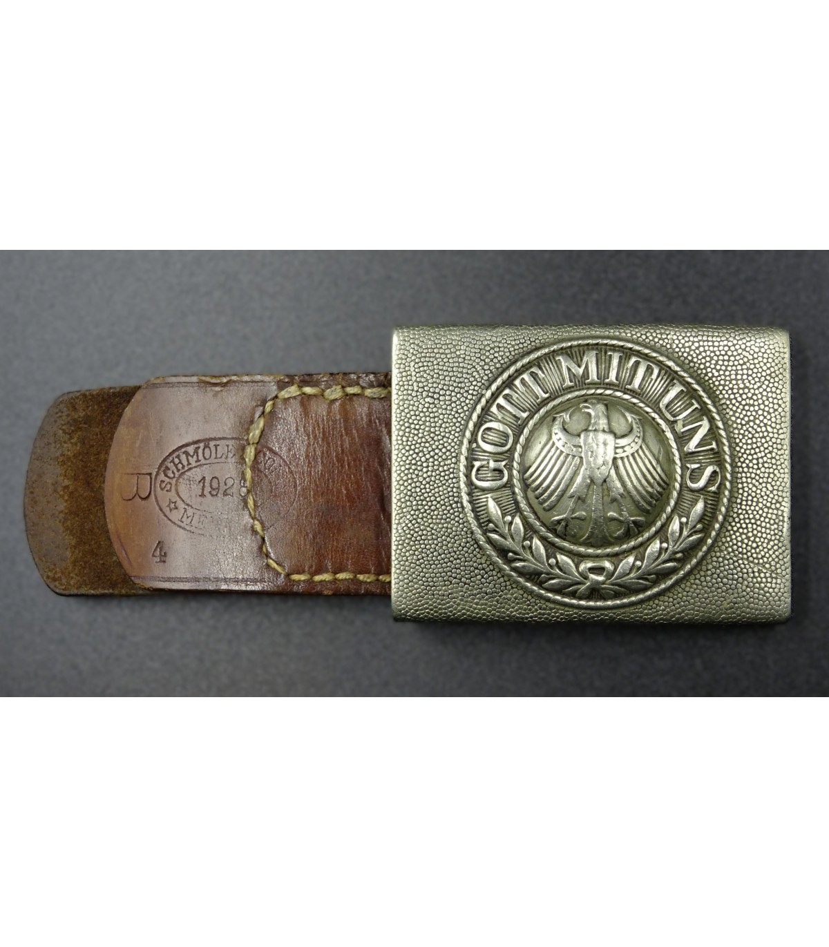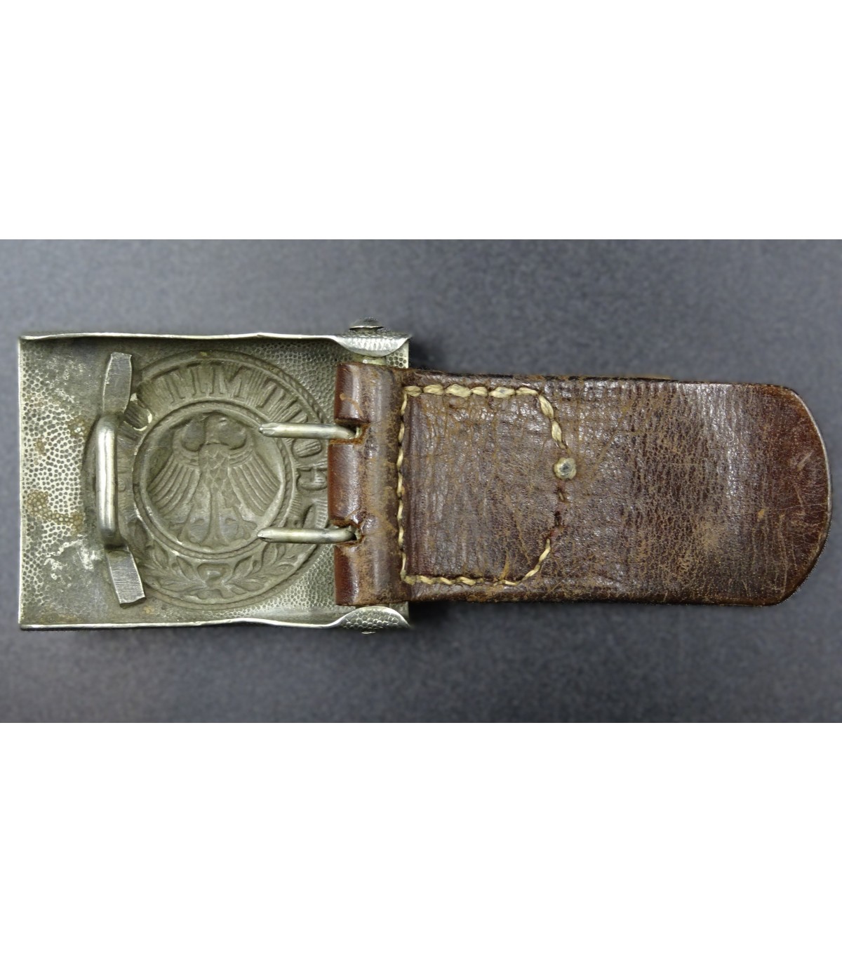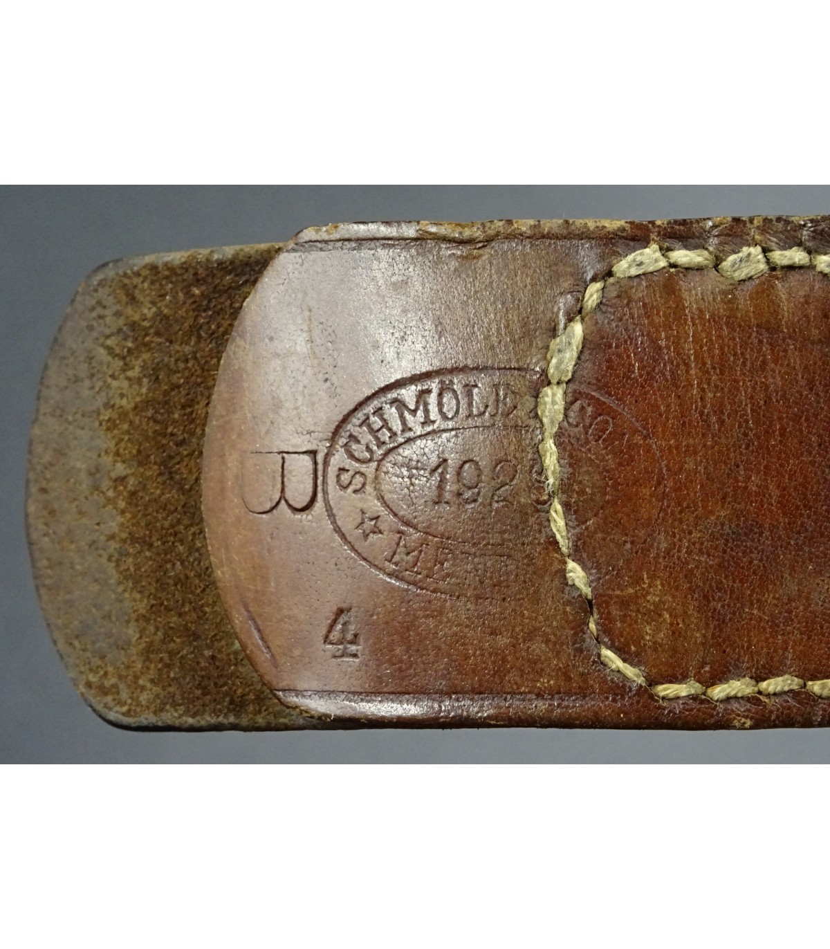 Maillechort. Languette cuir datée 1928. BE-TBE.