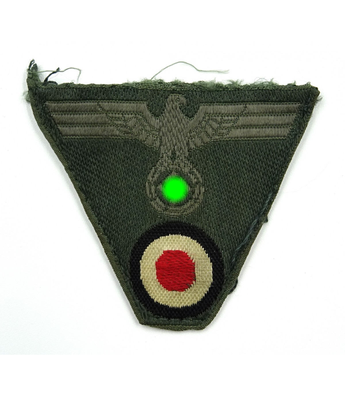Tissé bevo sur fond feldgrau. Décousu d'une casquette. BE.