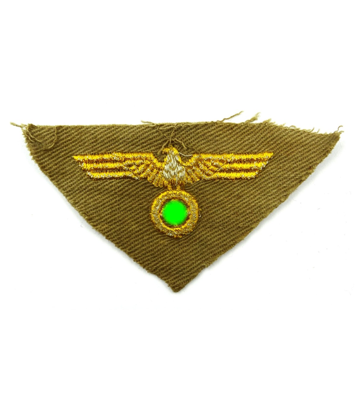 Brodé machine jaune d'or sur fond triangulaire sable. Fabrication française pendant l'occupation. TBE.