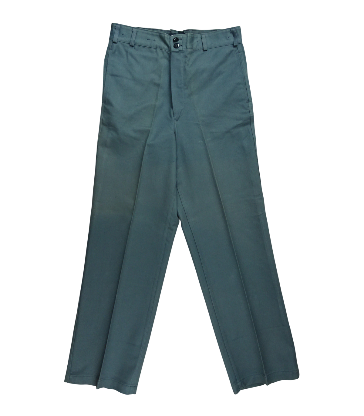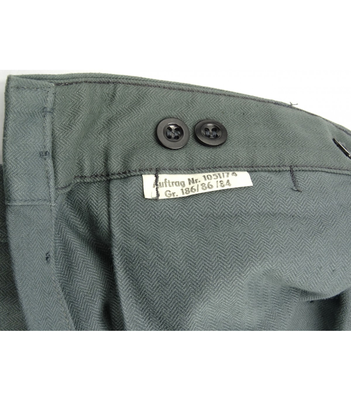 Treillis à chevrons feldgrau. Tour de taille 84cm. Fabrication d'immédiat après-guerre. Ideal pour compléter un mannequin à très petit prix !